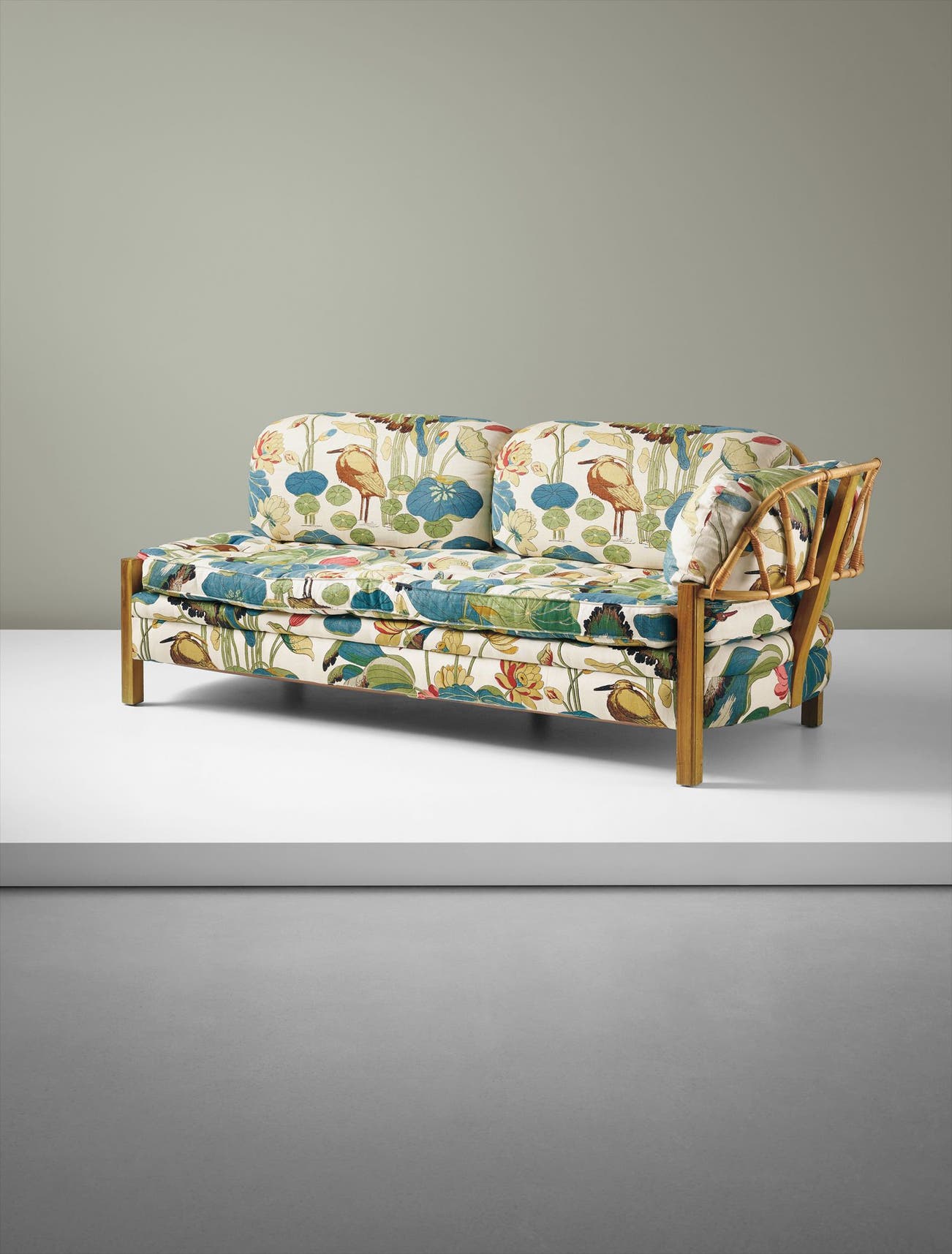 Bamboo, cane, walnut, fabric.