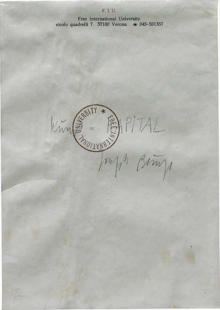 signed and titled 'Joseph Beuys "Kunst=Kapital"'