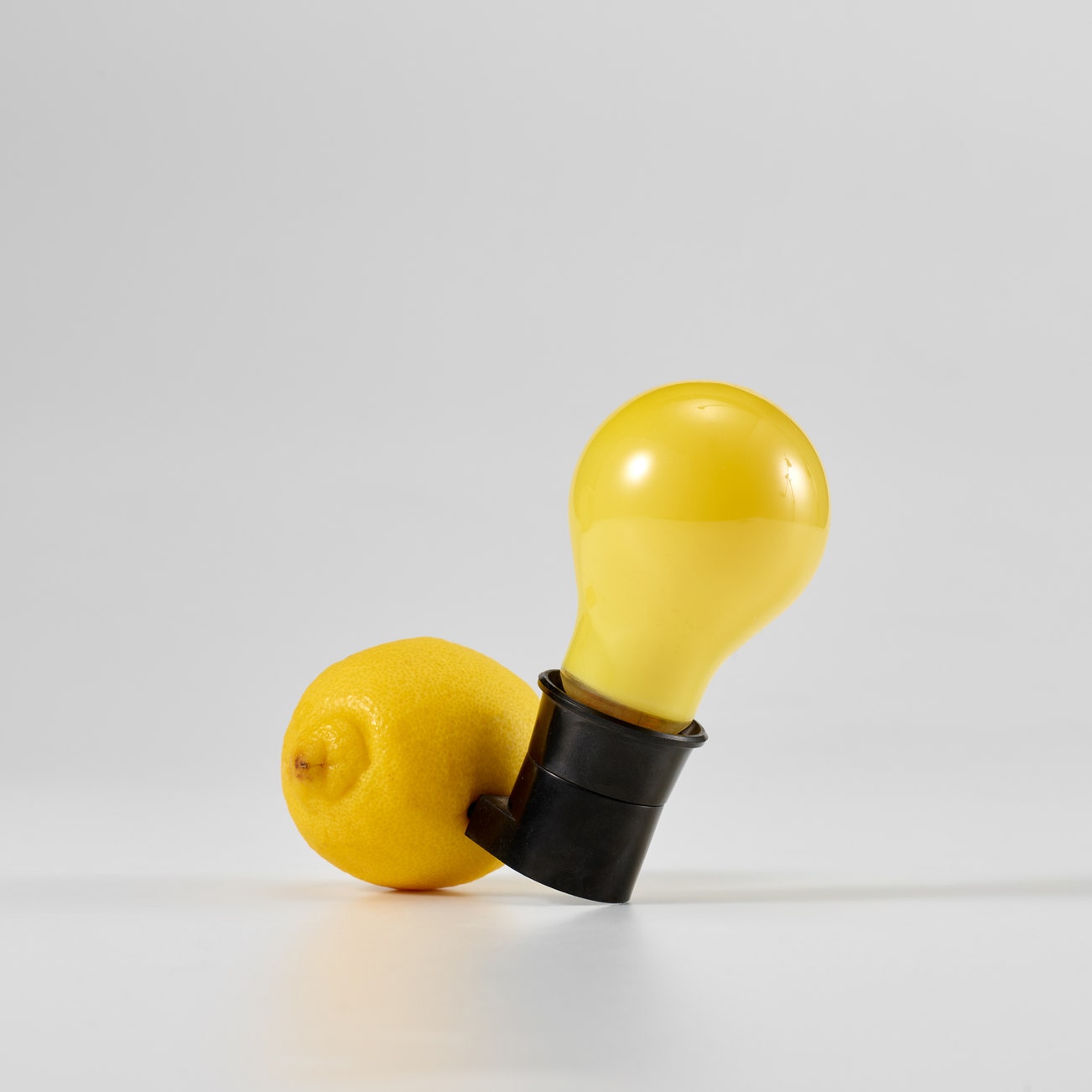 Multiple comprising light bulb (Mazda) without the manufacturer's inkstamp, plug socket, and exchangeable lemon, all contained in the original wooden box with yellow printed title.