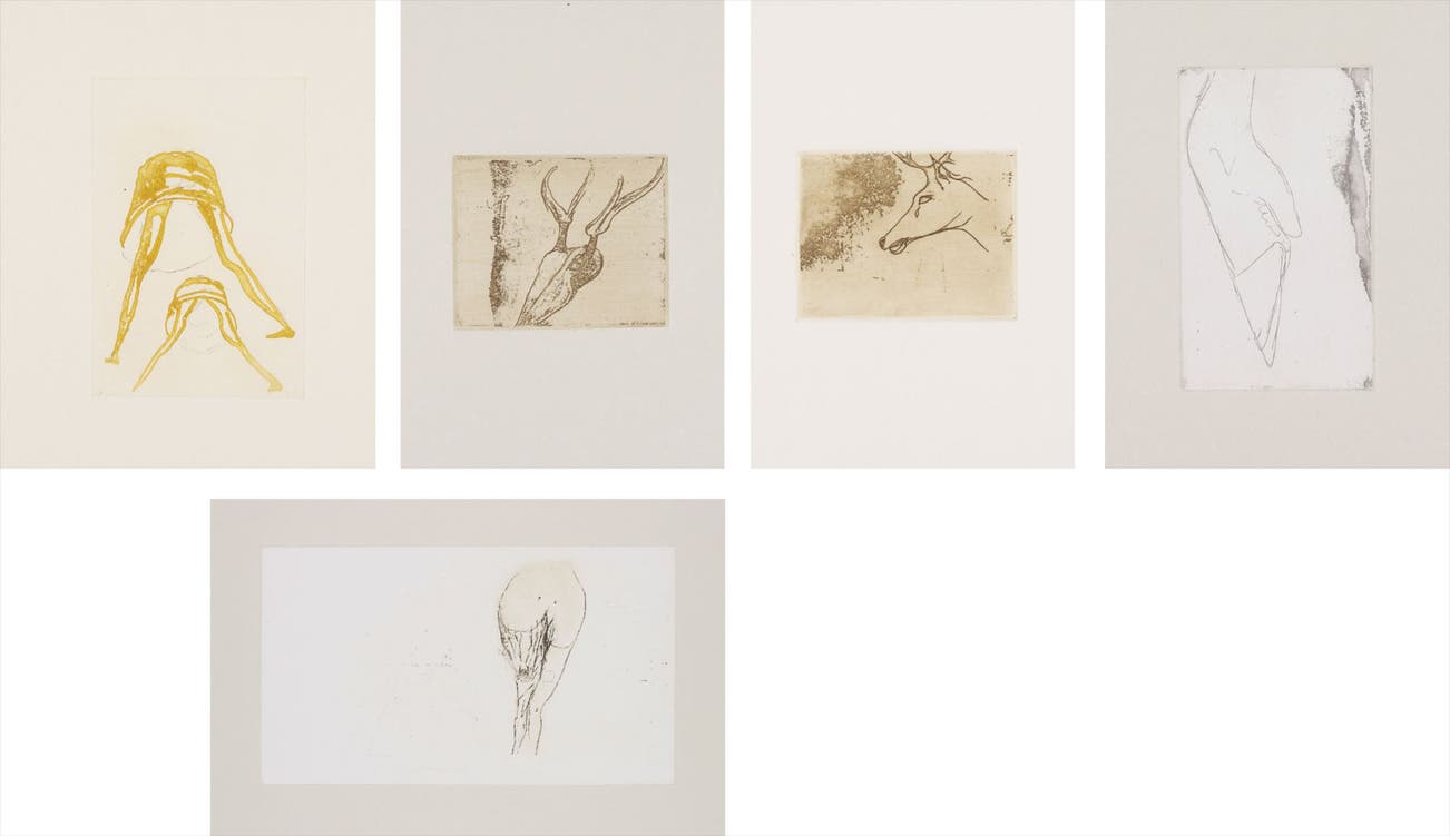 Five etchings, one with aquatint in color, and one with Chine-Collé, on various papers, with full margins,
