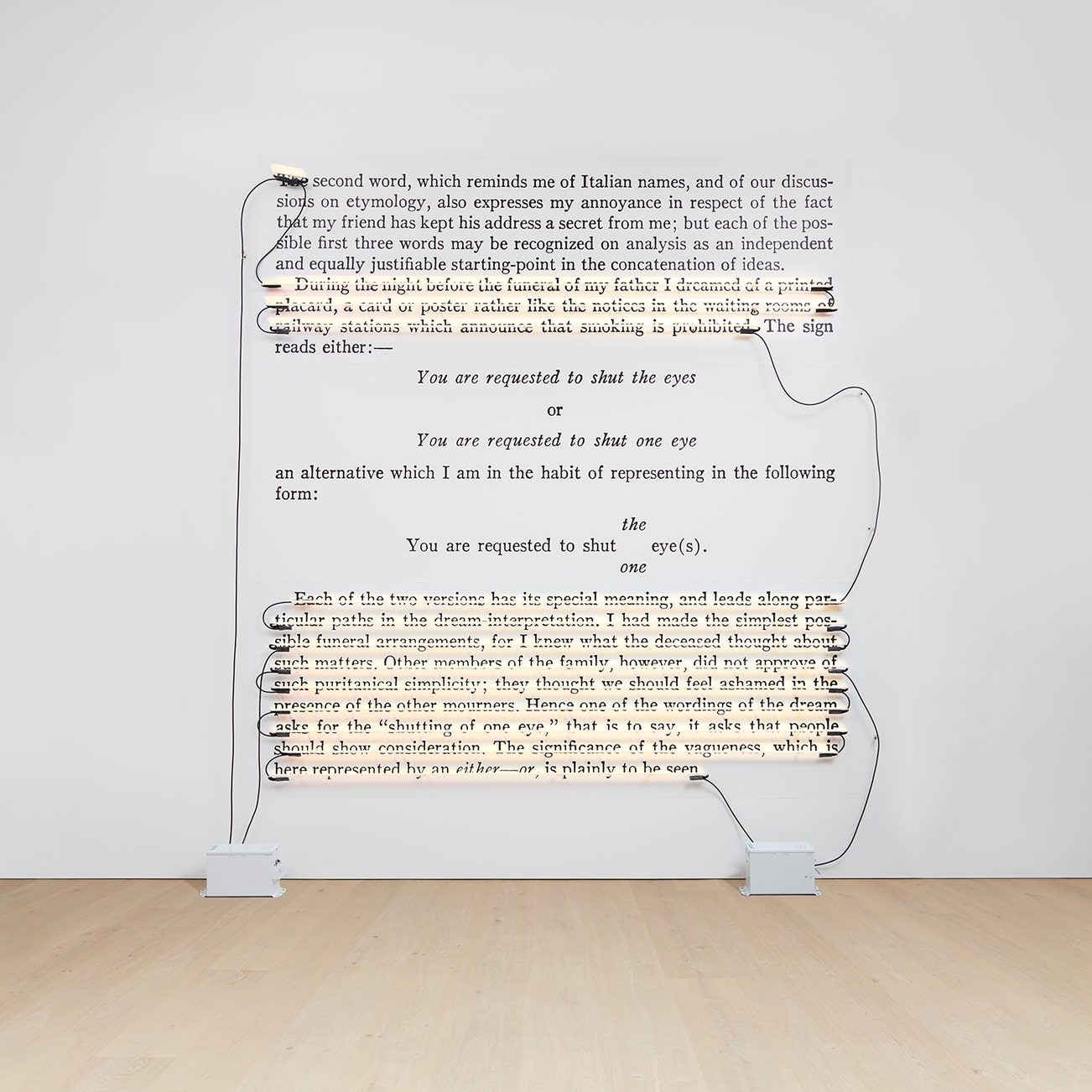 mounted photograph, neon and transformers