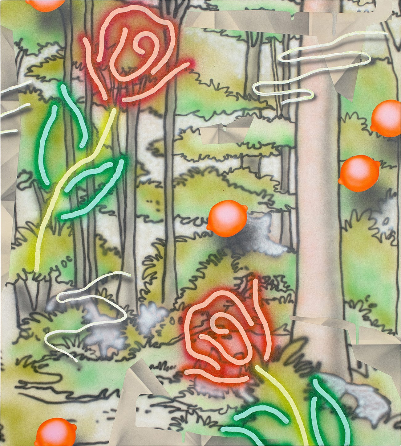 signed, titled and dated "Josh Reames 2015 'Feminine Forest'" on the reverse