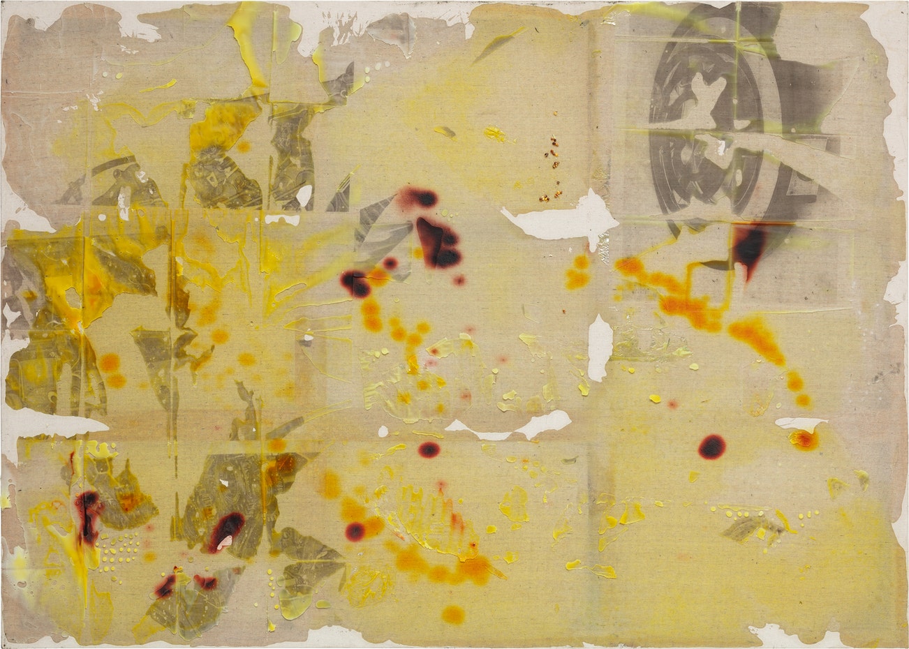 wax, ink and popcorn kernels on canvas