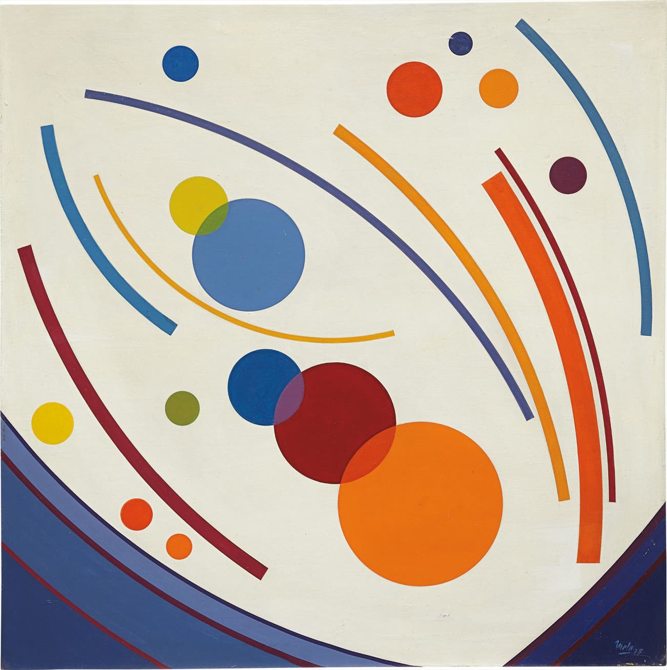 Signed and dated "Mele 73" lower right; further signed, titled and dated "Ritmos circulares No. 42 Juan N. Mele 1973" on the stretcher.
