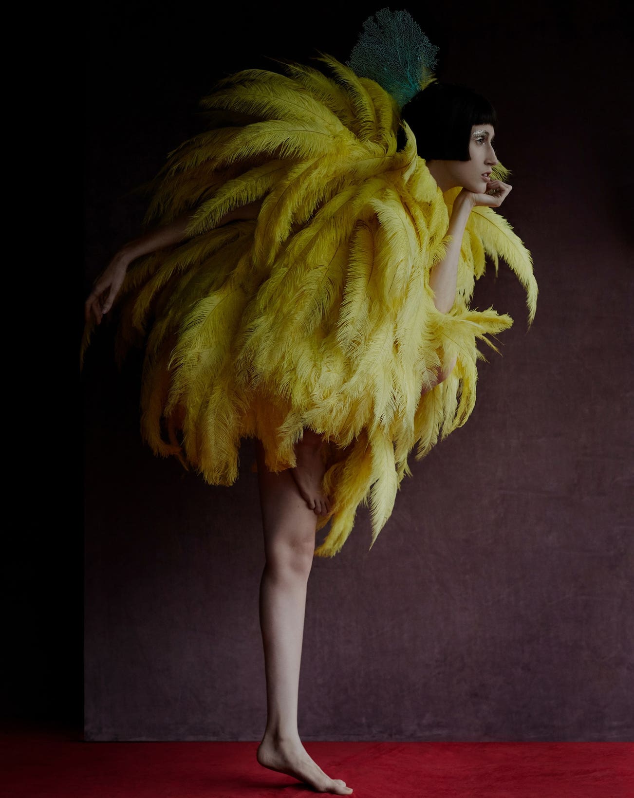 Julia Hetta’s distinctive use of light, colour and texture is evident in this enchanting photograph featuring Anna Cleveland, the daughter of 1970s supermodel and Dalí muse Pat Cleveland, shot for the Spring/Summer 2016 issue of AnOther Magazine. Here, the otherworldly model is portrayed as a fantastical creature; wearing a yellow-plumed ostrich feather dress, she stands in a flamingo’s one-legged stance with her arm and neck extended in opposite directions, her chin resting on her beak-like hand. Her contours delineated against the dark background highlight Hetta’s dreamlike vision in which reality and fantasy fuse together harmoniously. Based in Stockholm, Hetta has photographed for such leading publications as Vogue, Vanity Fair and AnOther Magazine and her work has been exhibited internationally, including Foam’s 2014 exhibition Don’t Stop Now: Fashion Photography Next, which showcased next-generation photographers working in fashion today.