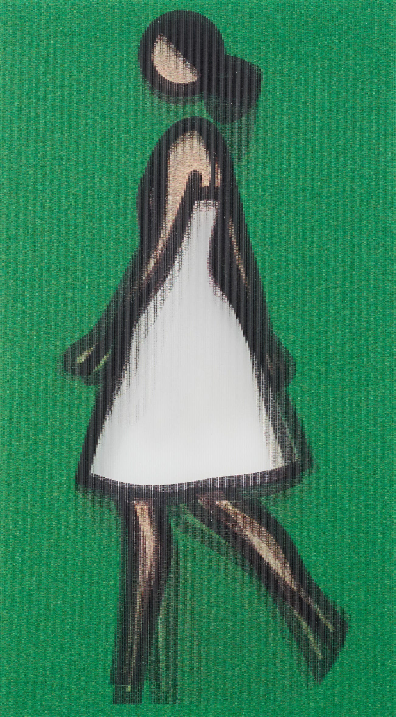 Lenticular acrylic panel comprised of four inkjet prints in colours, printed directly onto 20 lpi lenticular animating lenses, back mounted with card, contained (as issued) within an envelope in the accompanying exhibition catalogue with lenticular cover.