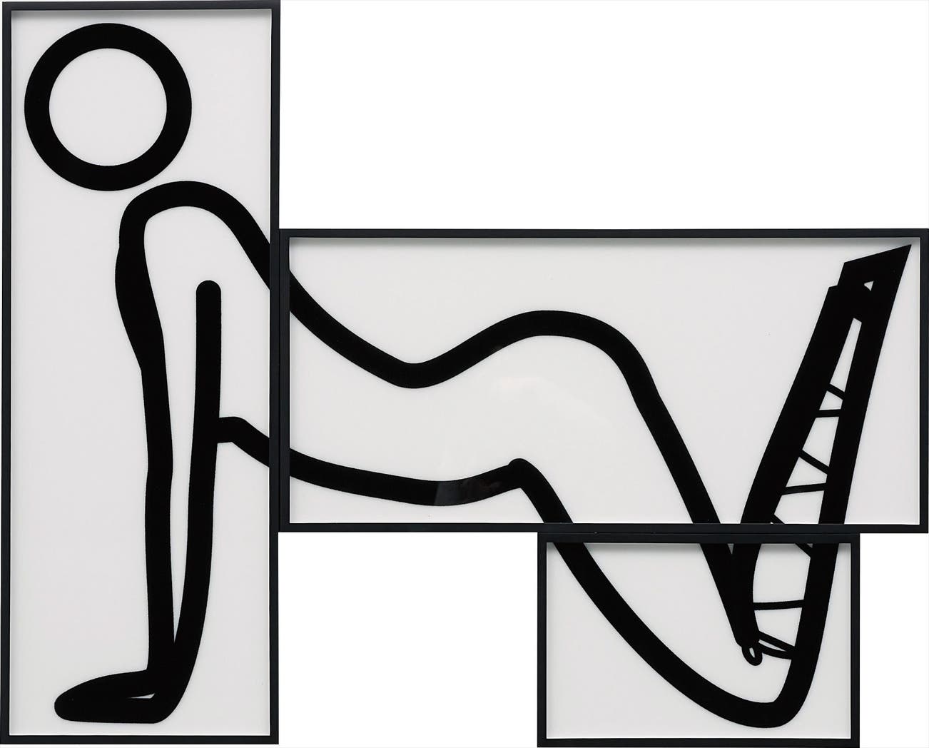 Flocking adhesive screenprinted on 3mm white Plexiglas acrylic, with hand-flocked black nylon, in three panels,