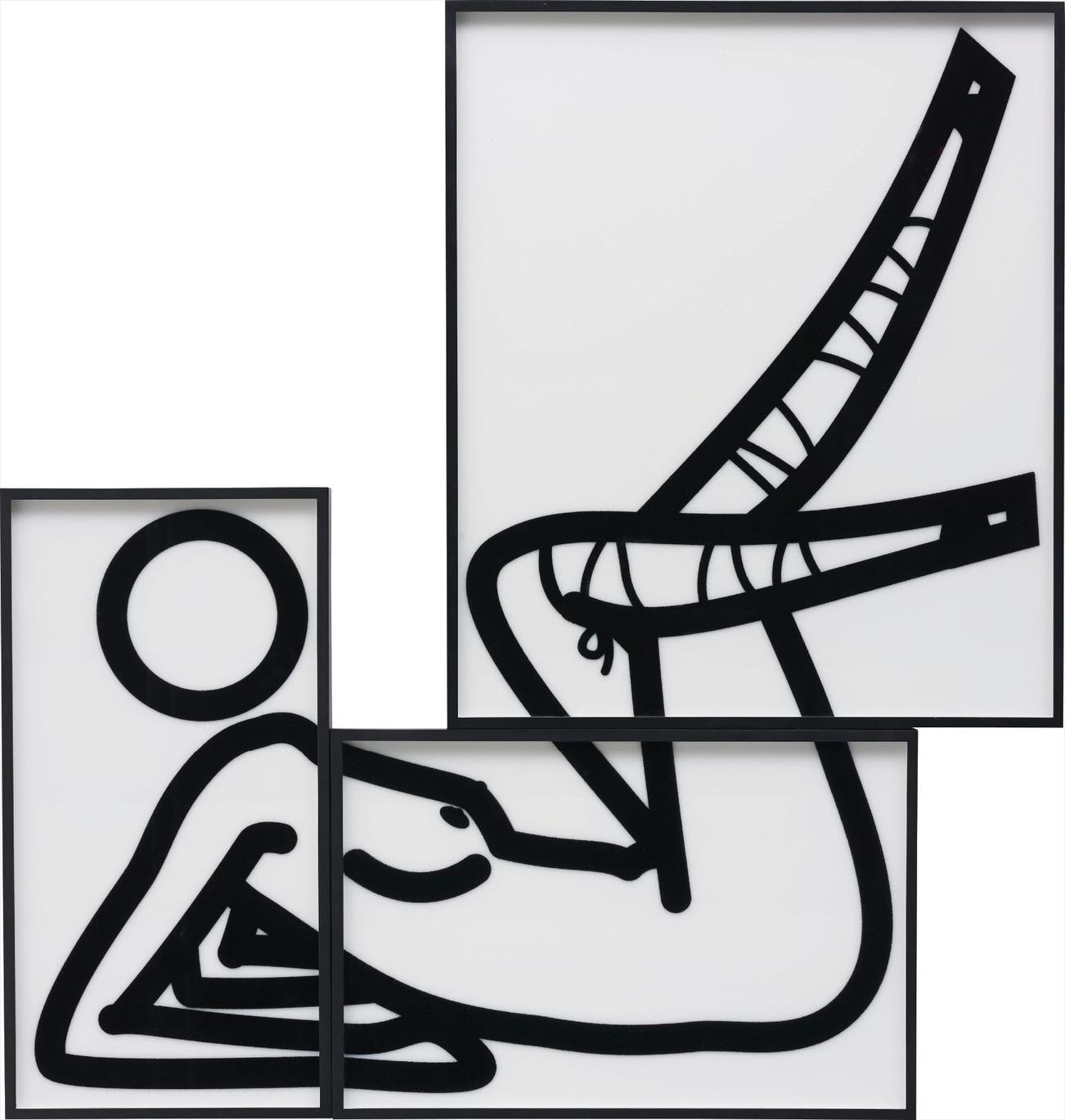 Flocking adhesive screenprinted on 3mm white Plexiglas acrylic, with hand-flocked black nylon, in three panels,