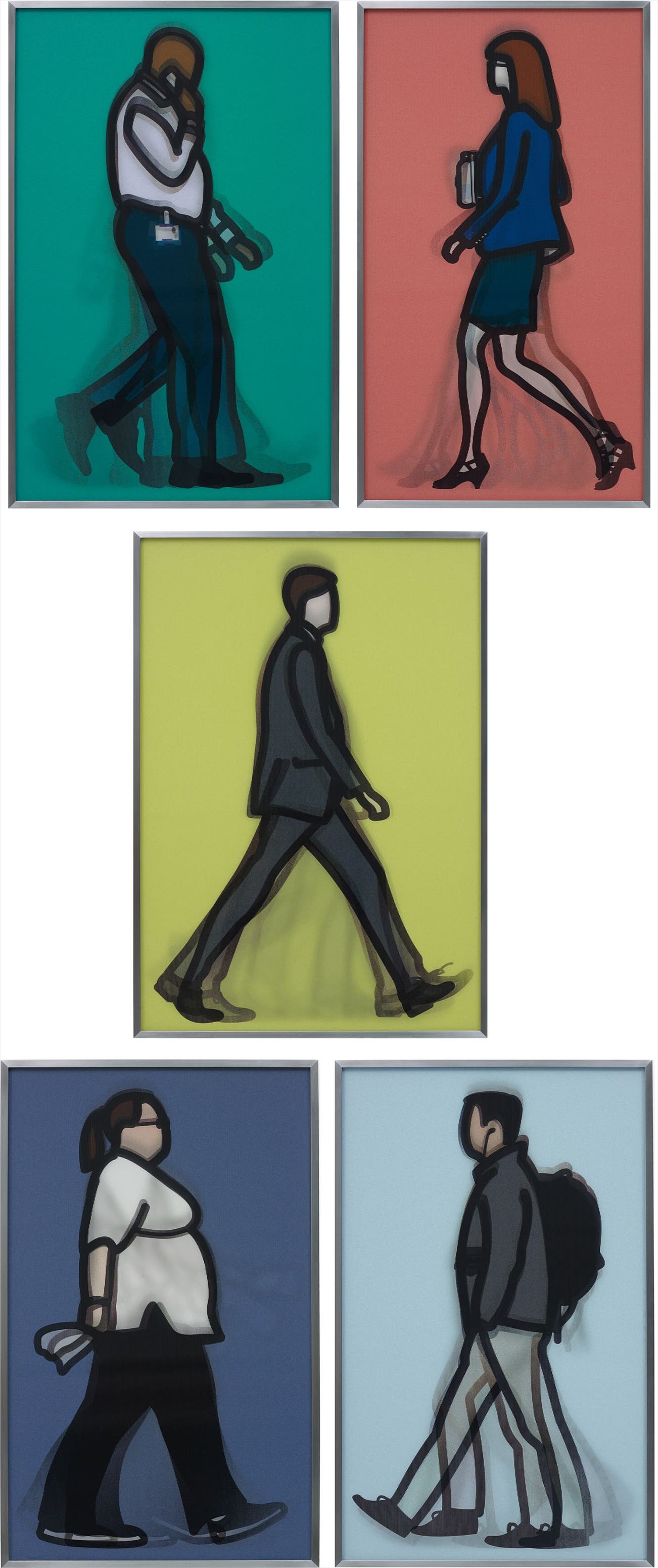 The complete set of five lenticular acrylic panels comprised of four inkjet prints in colours, printed directly onto 20 lpi lenticular animating lenses, back mounted with 3mm Dibond,
