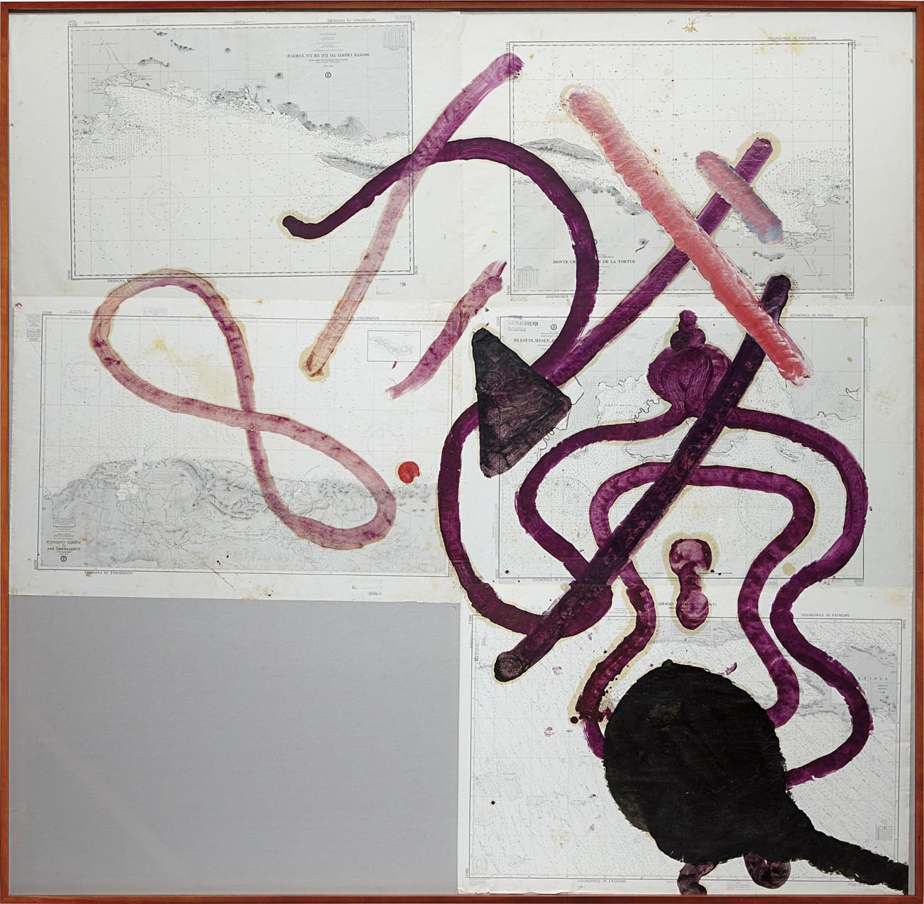 oil on navigational maps, laid on linen