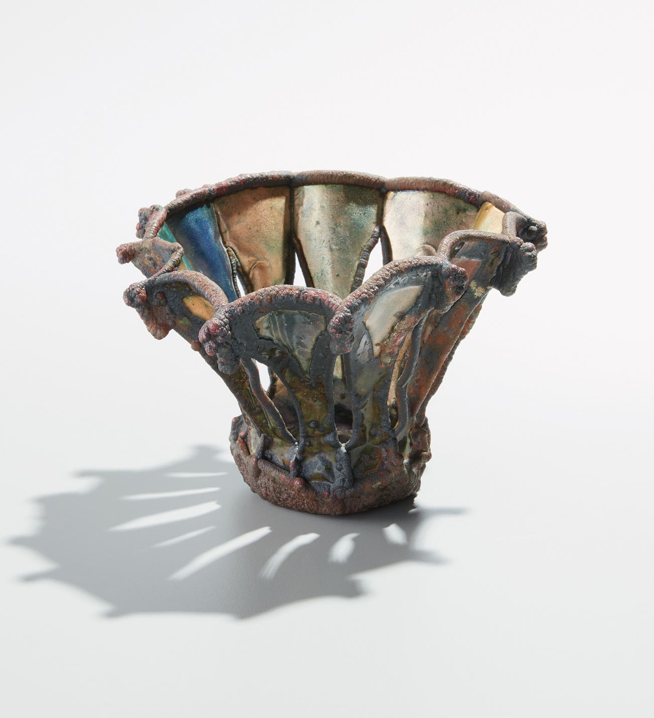 American | B. 1918 D. 2015June Schwarcz was an experimental enamelist whose extensive body of work showcased the evolution of her innovative practice. After training as an industrial designer at Pratt Institute, she encountered enameling en route to Sausalito, where she would spend the next several decades defining the craft and cementing her status as one of the leading figures of the field. She used electroplating and electroforming techniques to produce varied textures in her work and often employed folding and stitching to further experiment with form and surface. Her work is in the permanent collections of multiple institutions including The Metropolitan Museum of Art, New York, the Renwick Gallery of the Smithsonian American Art Museum, Washington, DC, and the Museum of Fine Arts, Boston.