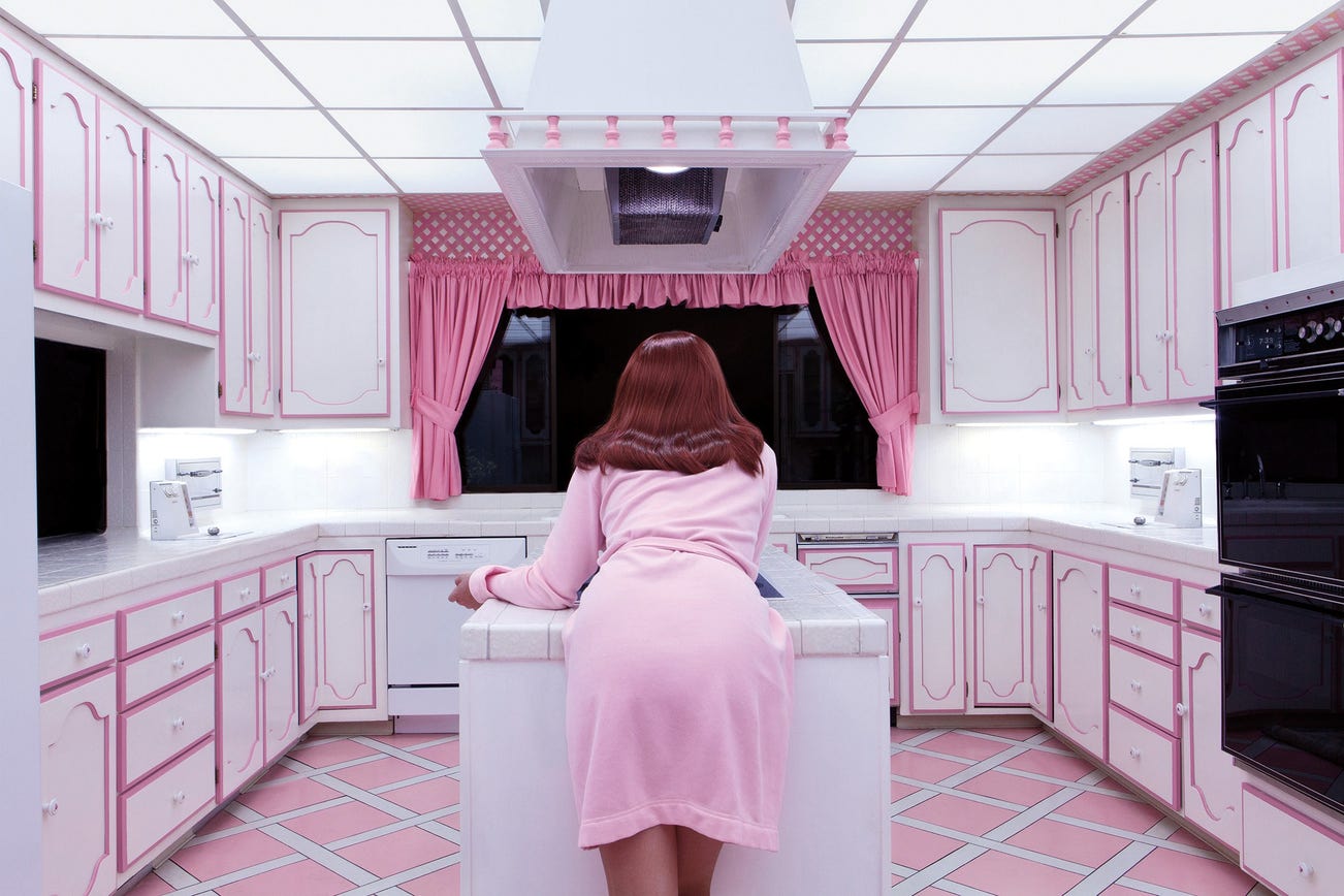 For her series What To Do With A Million Years, Juno Calypso travelled 26 feet underground in a suburb of Las Vegas to an unoccupied, 15,000-square-foot 1970s Cold War bunker, complete with a pool and a garden. Subterranean Kitchen, presented here, was created during her three days in isolation – eating, sleeping, filming and photographing herself – inside this perfectly preserved time capsule. This cinematic photograph of Calypso in a pink dressing gown, shot from behind as she leans against the island in the pink-and-white kitchen and looks out at the pitch, black windows has become the most desired image from the series. Calypso has won several awards, including the 2016 International Photography Award by the British Journal of Photography, and has been selected for the 2016 Foam Talent. Subterranean Kitchen will be exhibited at the 2019 Rencontres d'Arles.