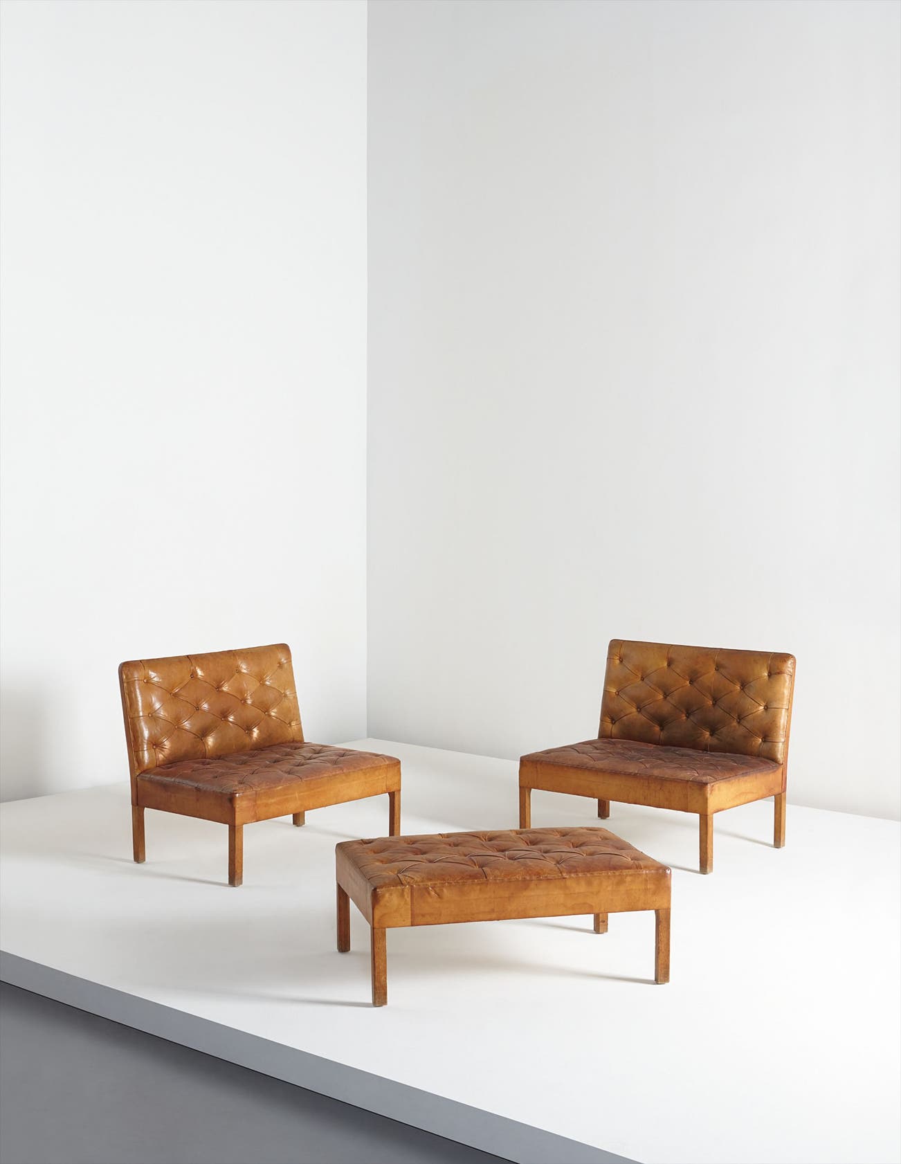 Executed by cabinetmakers Rud. Rasmussen A/S, Denmark. Comprising two settees and one bench.