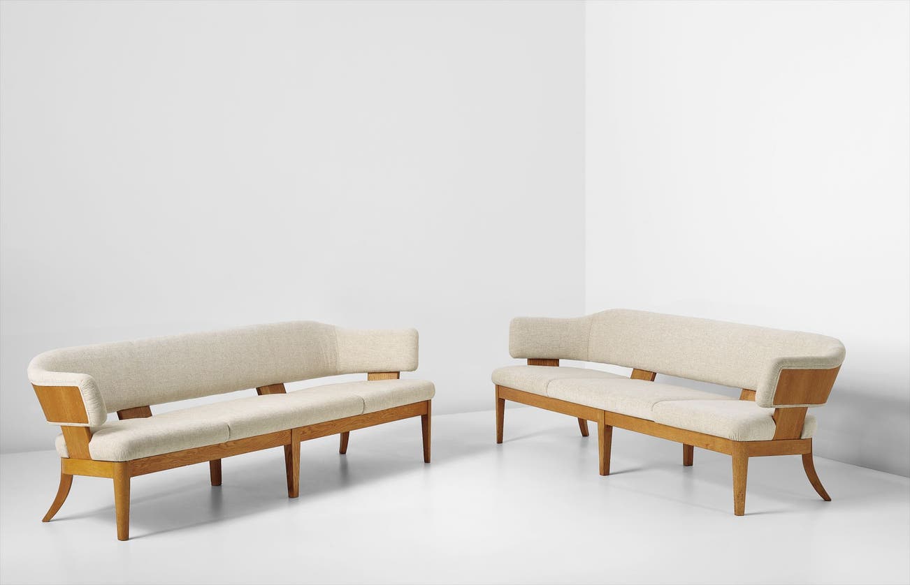 Pair of rare sofas, designed for the Copenhagen Stock Exchange, Committee Hall, Copenhagen