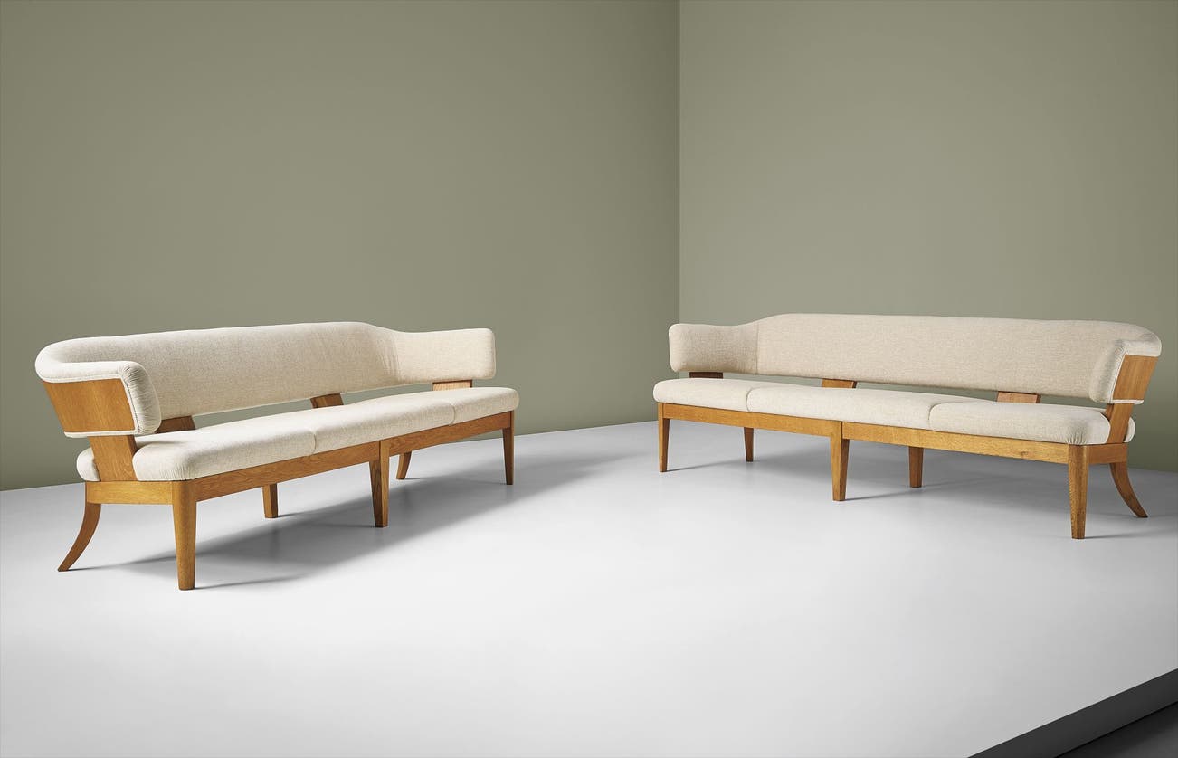 Pair of rare sofas, designed for the Copenhagen Stock Exchange, Committee Hall, Copenhagen