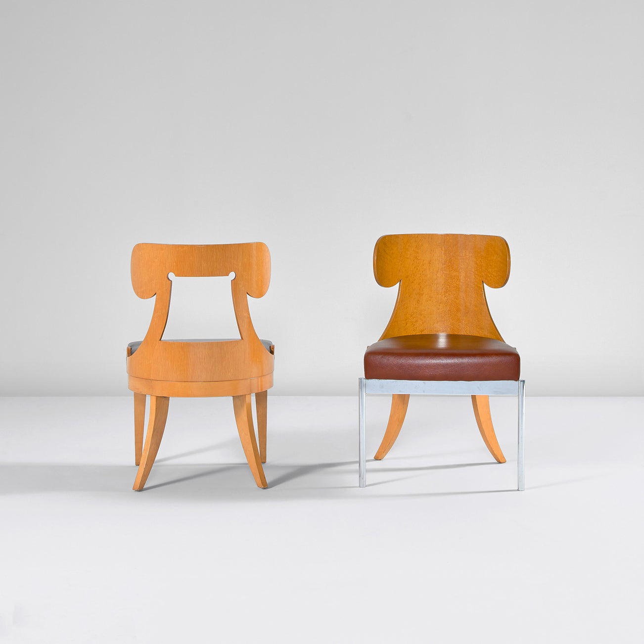 Kanji Ueki studied design and architecture in Milan before opening his interior design firm Casappo & Associates in Japan in 1975. His designs for interiors and furniture for the next four decades adhered to modernist rectilinear tendencies, breaking on rare occasion with the introduction of curves, as seen in the present Dino and Dina chairs. A very quiet departure from his typical designs, Dino and Dina are an excellent example of postmodern design, referencing classical furniture and architectural forms while synthesizing contemporary ideas for design—a nod to the studies of his past and the emerging energy of the current era.