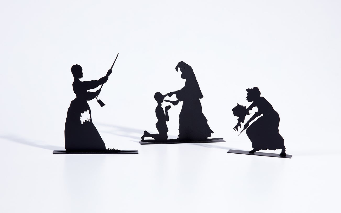 American | 1969Kara Walker sugarcoats nothing. Her masterpiece public art commission, A Subtlety, 2014, was a 35-foot high racial confrontation of artifact, mythology and American history in the form of a sphinx packed from 80-tonnes of Domino white sugar crystals. Walker's practice first caught audiences with her haunting paper cutout silhouettes retelling the injustices of slavery and the foundations of American capitalist culture.