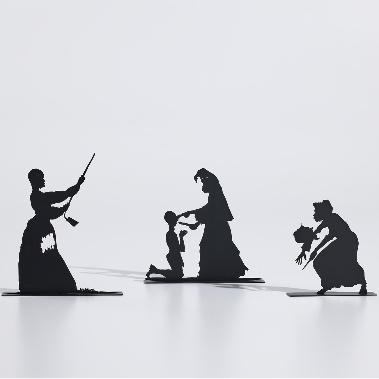 American | 1969Kara Walker sugarcoats nothing. Her masterpiece public art commission, A Subtlety, 2014, was a 35-foot high racial confrontation of artifact, mythology and American history in the form of a sphinx packed from 80-tonnes of Domino white sugar crystals. Walker's practice first caught audiences with her haunting paper cutout silhouettes retelling the injustices of slavery and the foundations of American capitalist culture.