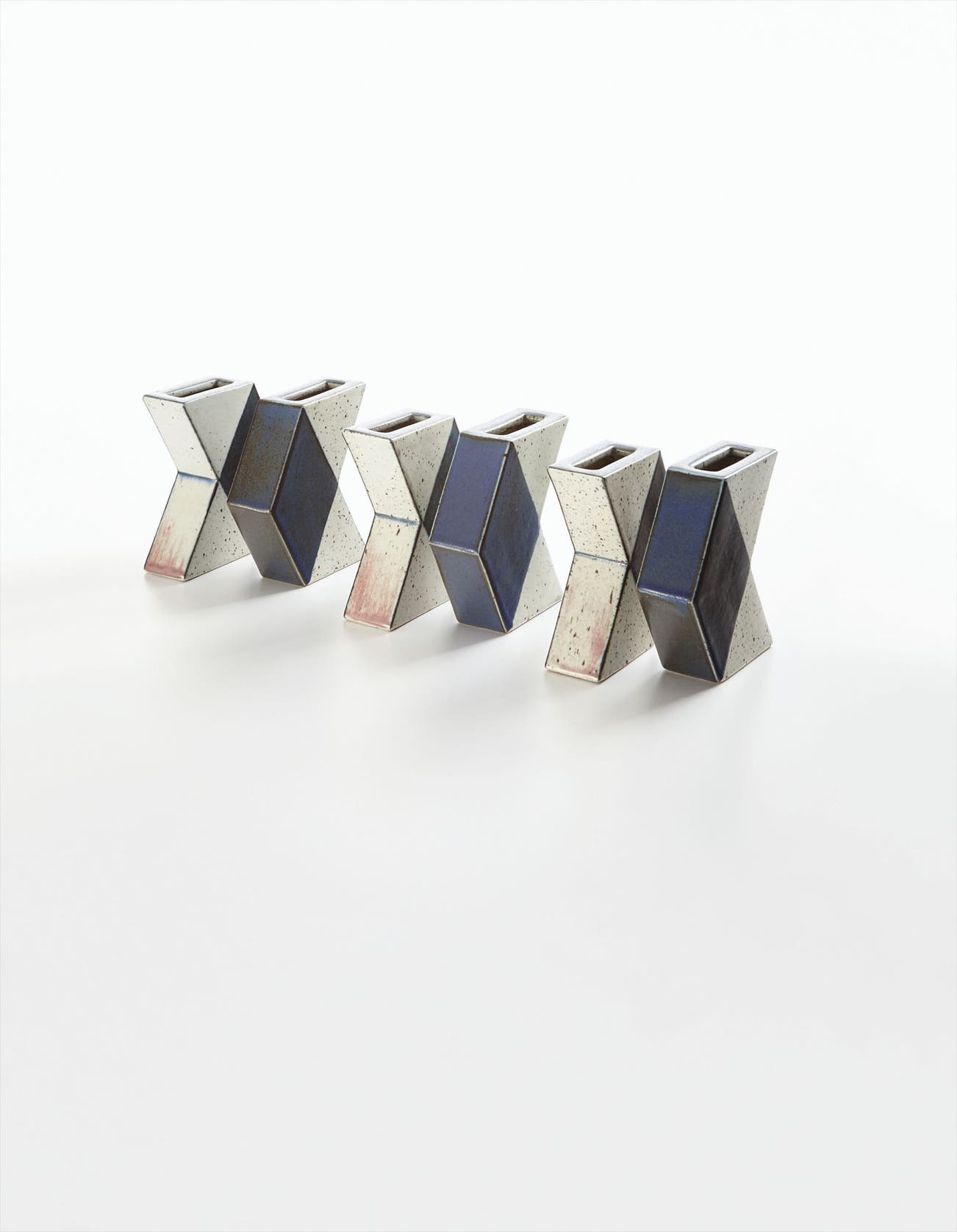 Slab-built glazed porcelain.