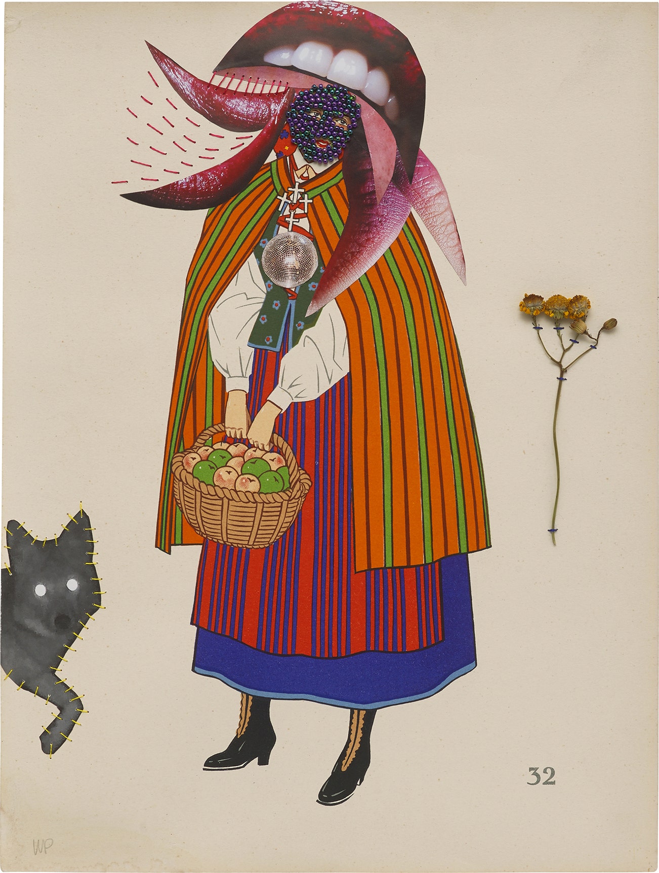 collage, embroidery and beads on paper