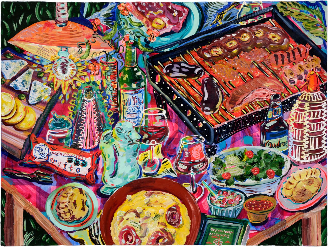 signed with the artist's initials, titled and dated ""Paradise à la carte: Parilla in the Boedo (Capital City Buenos Aires)" KPW 2021" on the reverse; signed with the artist's initials and dated "KPW 2021" on the stretcher