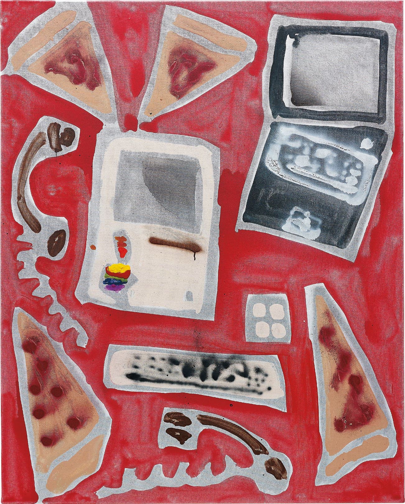 American | 1975Katherine Bernhardt, whether in her paintings or make-shift Moroccan rugs, is rapt by neons and geometries. The artist, who works in New York, takes an almost hasty-flick of a brushstroke that lands as a jagged architectural form — figures cut in space and in buzzing colors that leave a mental trace.