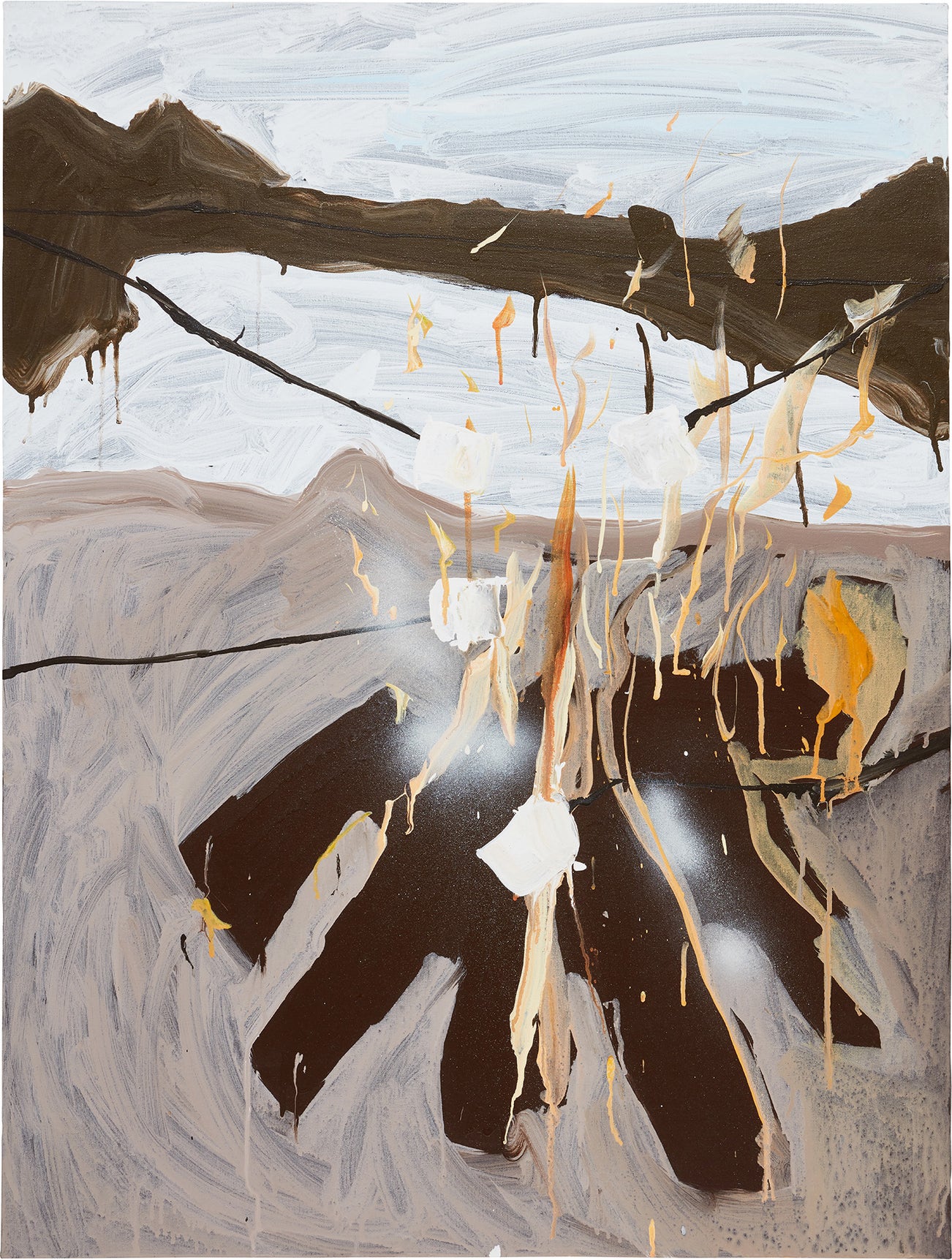 Seemingly each month, multiple galleries, museums or art fairs across the world exhibit Bernhardt's large-scale fantasies and rug-centric installations, as seen in 2017 at Art Basel and with a solo retrospective at the Modern Art Museum of Fort Worth, Fort Worth. "I think the best painters don't intellectualize their own art—they just make stuff," she says; but with sharks circling trash in the water in today's climate, as is depicted in Sharks, Toilet Paper and Plantains, it's not hard to see Bernhardt's deeper meanings.