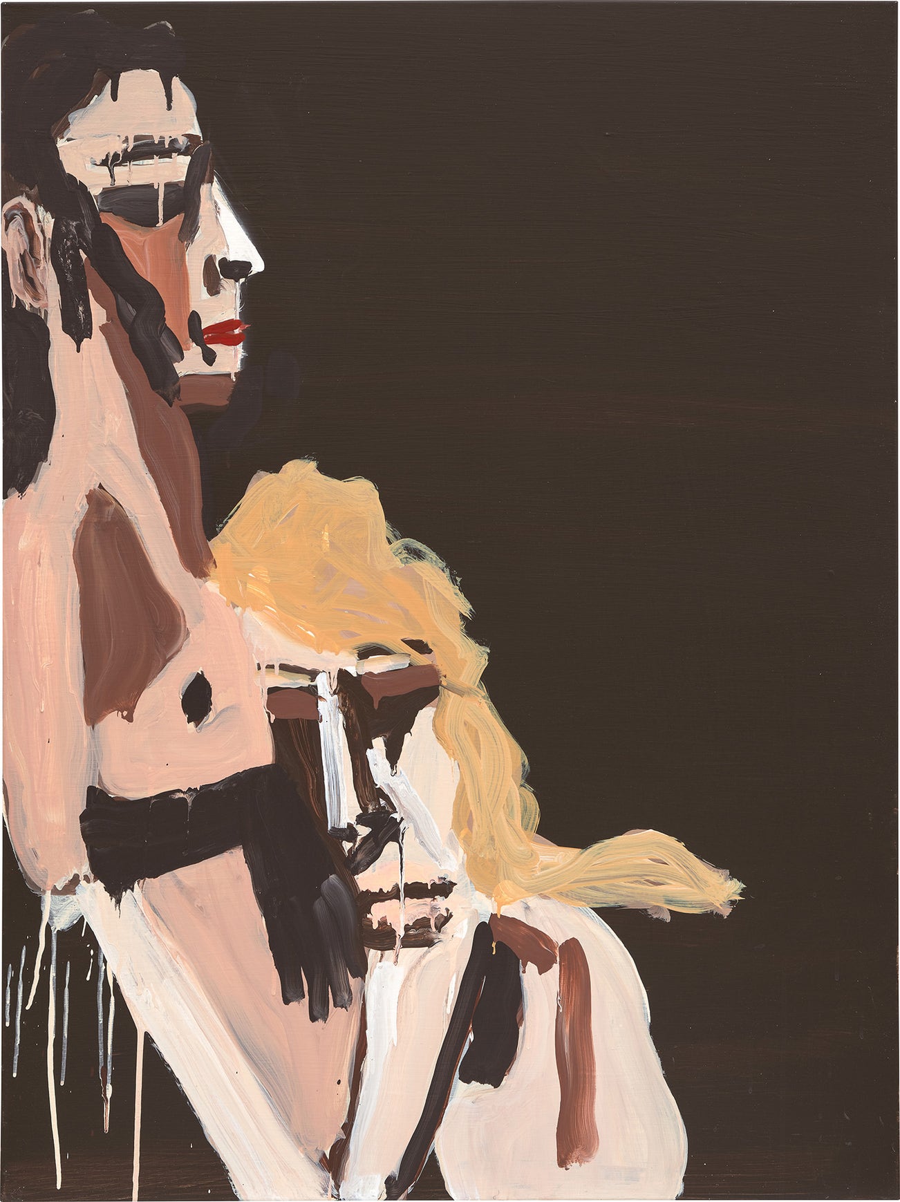 Seemingly each month, multiple galleries, museums or art fairs across the world exhibit Bernhardt's large-scale fantasies and rug-centric installations, as seen in 2017 at Art Basel and with a solo retrospective at the Modern Art Museum of Fort Worth, Fort Worth. "I think the best painters don't intellectualize their own art—they just make stuff," she says; but with sharks circling trash in the water in today's climate, as is depicted in Sharks, Toilet Paper and Plantains, it's not hard to see Bernhardt's deeper meanings.