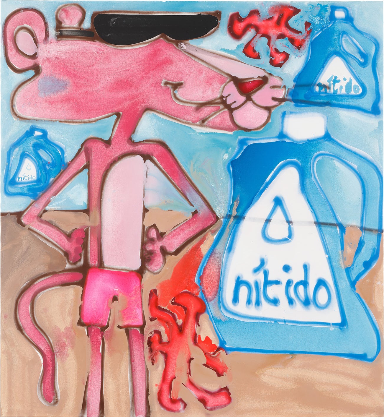 Seemingly each month, multiple galleries, museums or art fairs across the world exhibit Bernhardt's large-scale fantasies and rug-centric installations, as seen in 2017 at Art Basel and with a solo retrospective at the Modern Art Museum of Fort Worth, Fort Worth. "I think the best painters don't intellectualize their own art—they just make stuff," she says; but with sharks circling trash in the water in today's climate, as is depicted in Sharks, Toilet Paper and Plantains, it's not hard to see Bernhardt's deeper meanings.