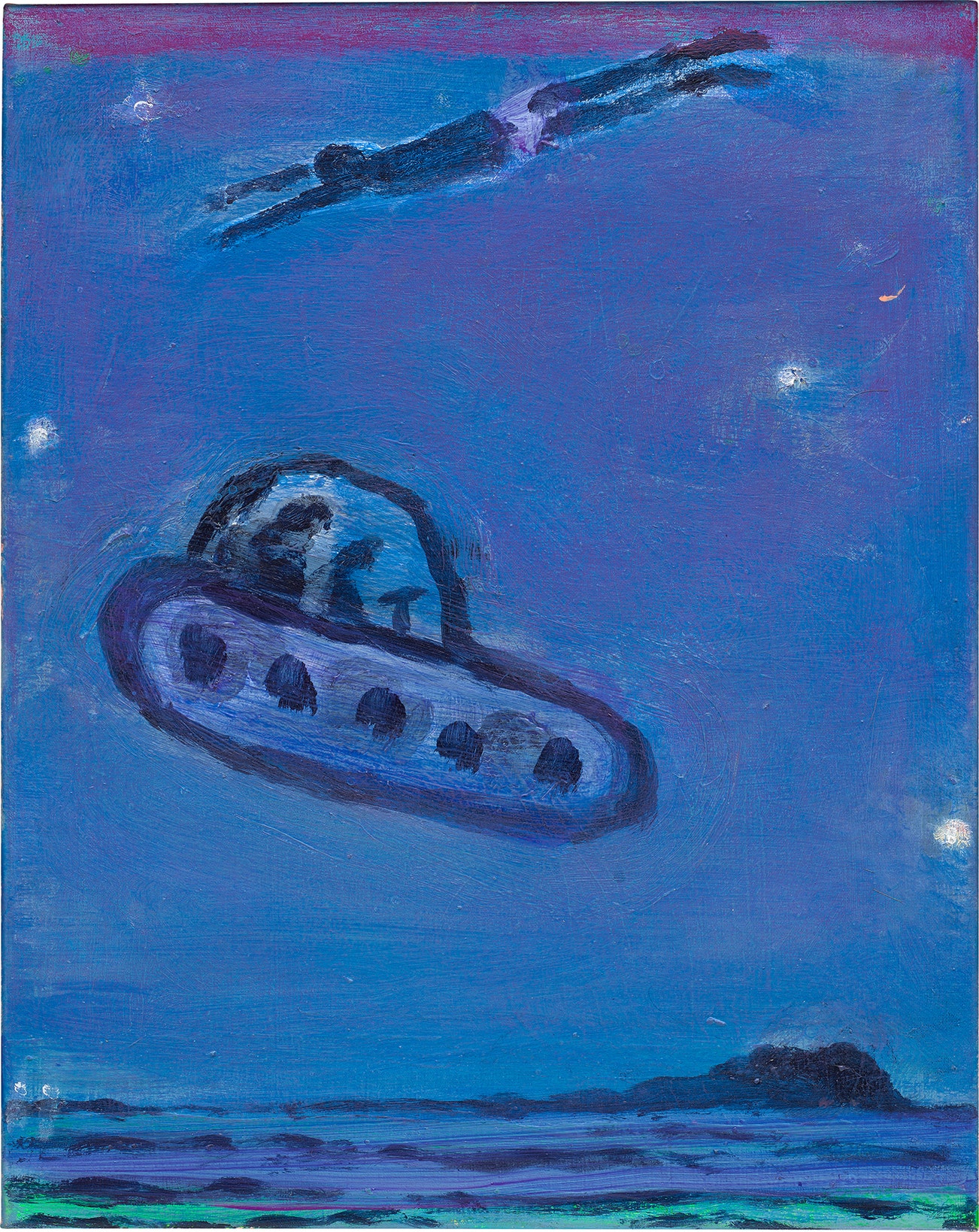 signed, titled and dated 'UFO + Diver '17 K Bradford' on the reverse