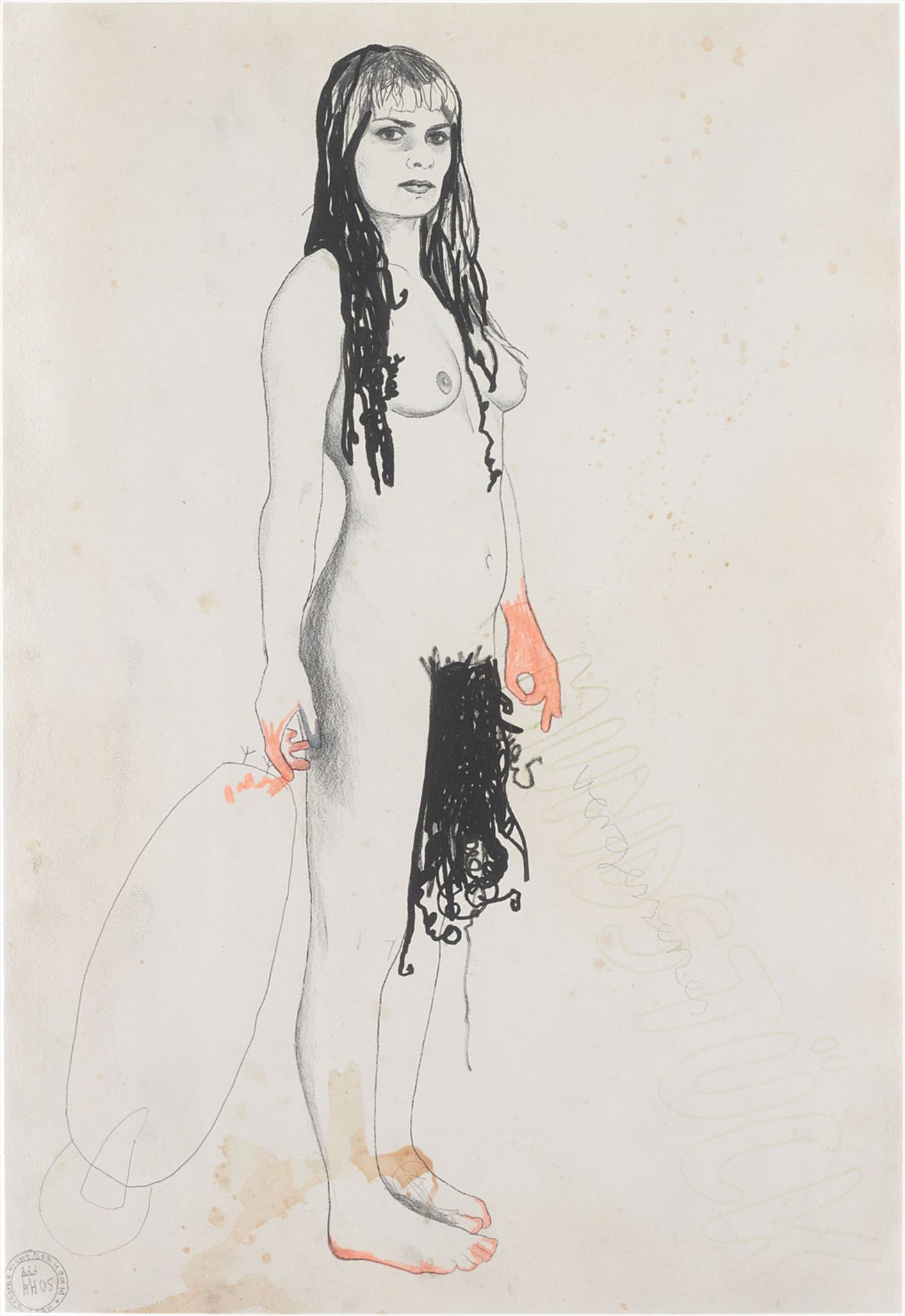 Initialled and dated 'KH 05' lower left with the inscription 'sicher nicht komm heut'. Further titled 'MUNDSTÜCK' lower right.