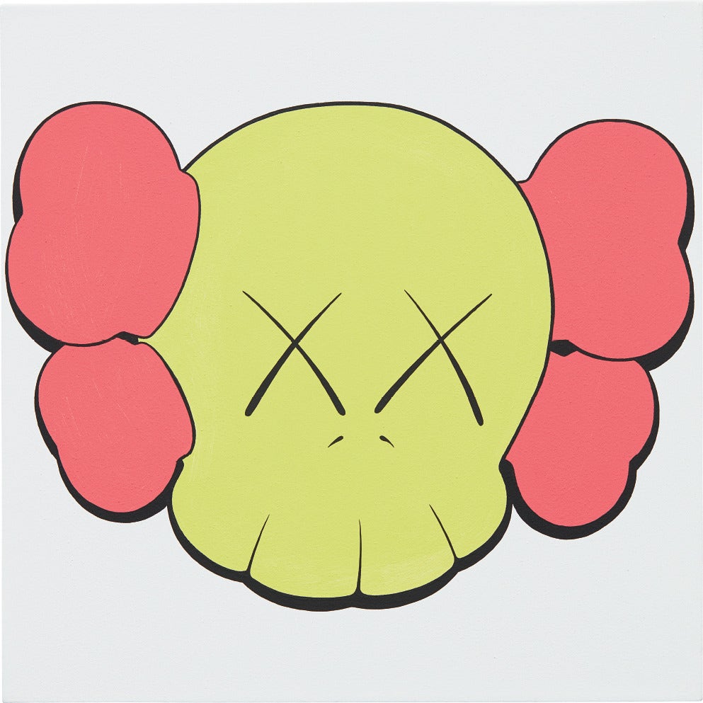 Perhaps he is most known for his larger-than-life fiberglass sculptures that supplant the body of Mickey Mouse onto KAWS' own imagined creatures, often with 'x'-ed out eyes or ultra-animated features. However, KAWS also works frequently in neon and vivid paint, adding animation and depth to contemporary paintings filled with approachable imagination. There is mass appeal to KAWS, who exhibits globally and most frequently in Asia, Europe and the United States.