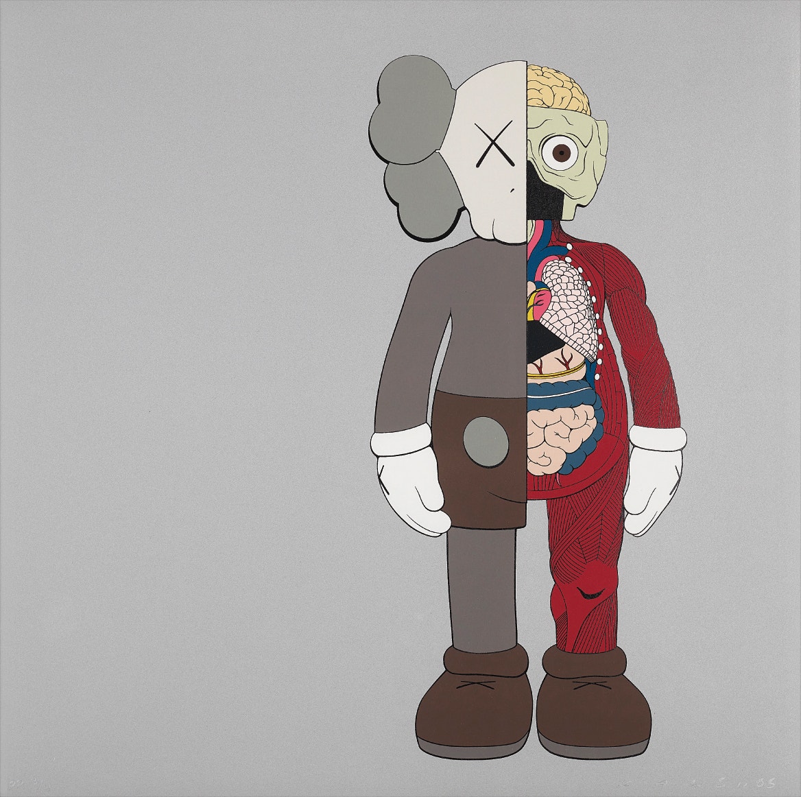 Perhaps he is most known for his larger-than-life fiberglass sculptures that supplant the body of Mickey Mouse onto KAWS' own imagined creatures, often with 'x'-ed out eyes or ultra-animated features. However, KAWS also works frequently in neon and vivid paint, adding animation and depth to contemporary paintings filled with approachable imagination. There is mass appeal to KAWS, who exhibits globally and most frequently in Asia, Europe and the United States.