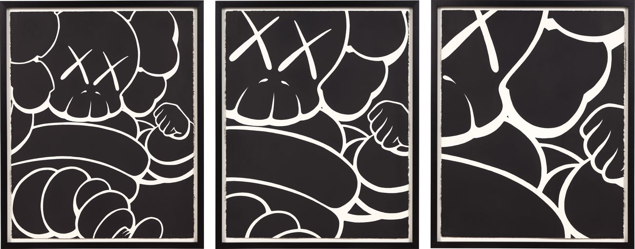 Perhaps he is most known for his larger-than-life fiberglass sculptures that supplant the body of Mickey Mouse onto KAWS' own imagined creatures, often with 'x'-ed out eyes or ultra-animated features. However, KAWS also works frequently in neon and vivid paint, adding animation and depth to contemporary paintings filled with approachable imagination. There is mass appeal to KAWS, who exhibits globally and most frequently in Asia, Europe and the United States.