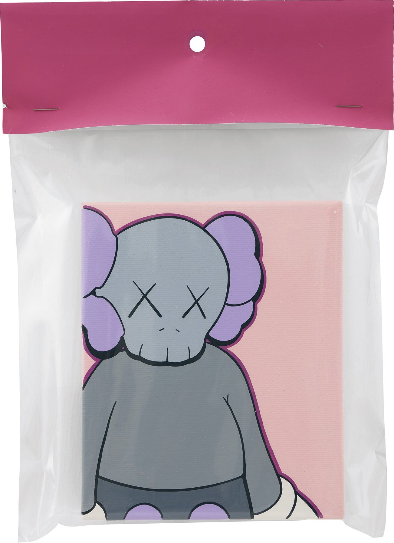 A few of the first 40 package paintings ever created for the 2003 Original Fake exhibition at the BAPE Gallery in Tokyo, these works were inspired by Japan’s toy collecting scene – KAWS’ unique attempt to bridge the gap between the toy and art collecting realms. Whilst the plastic packaging was mass-produced, each painting was created individually, reflecting on how similar toy collectors were to their art counterparts in seeing value in items produced in limited quantities.