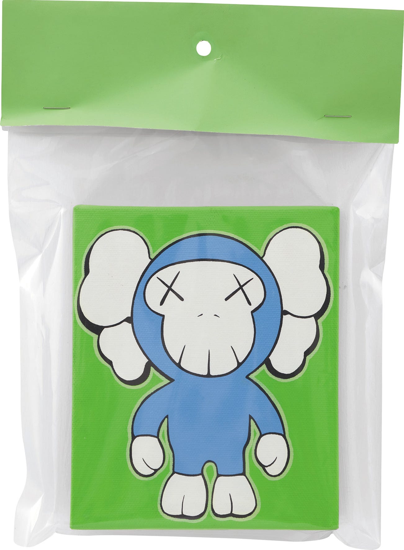 Four of the first 40 package paintings ever created for the 2003 Original Fake exhibition at the BAPE Gallery in Tokyo, these works were inspired by Japan’s toy collecting scene – KAWS’ unique attempt to bridge the gap between the toy and art collecting realms. Whilst the plastic packaging was mass-produced, each painting was created individually, reflecting on how similar toy collectors were to their art counterparts in seeing value in items produced in limited quantities.