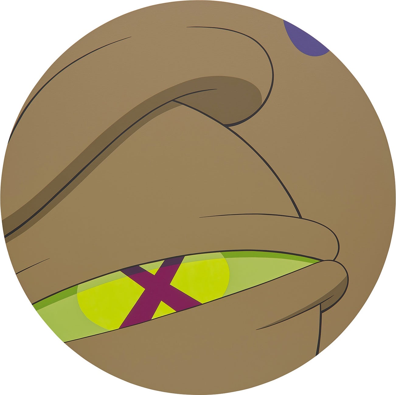 Visual quotation was also a common theme in the work of American pop artist Roy Lichtenstein, who, like KAWS, was heavily influenced by cartoon and comic book imagery; Lichtenstein commented that ‘artists have often converted the work of other artists to their own style.’ (Roy Lichtenstein, ‘A Review of My Work Since 1961’, in Graham Bader, Roy Lichtenstein, Cambridge, MA, 2009, p.61). Whereas Lichtenstein’s Mirror series exposed the artifice of the canvas by mimicking the surface of a mirror which cannot reflect, here KAWS uses the tondo formation to reflect the viewer’s reflection as a cartoon character, subsuming us into his protagonist's world. Continuing a dialogue with Pop and Street artists, KAWS captures an astute cultural consciousness in his work whilst simultaneously carving out a unique style. With a background in the New Jersey skateboarding community, KAWS’ oeuvre seeks to blur and level distinctions between perceived ‘high’ and ‘mass’ culture, his work playfully oscillating between traditional painting practice and recognisable cultural signifiers from the cartoon world of television, books and film.