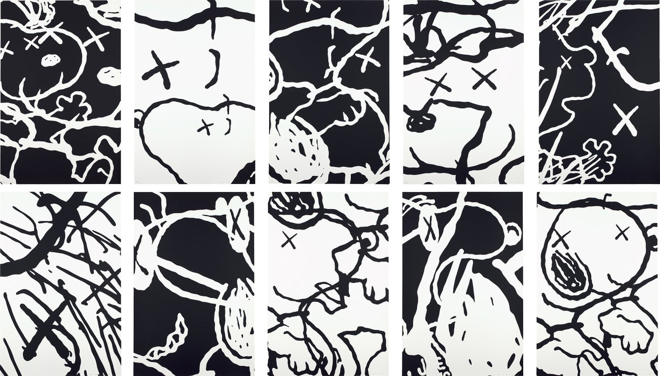 By extracting minimalist, detailed crops of Charlie Brown, KAWS has left just a hint of the persona being portrayed, yet even with just a dissociated portion the viewer is able to immediately recognize this iconic canine. As the artist comments, “[I] found it weird how infused a cartoon could become in people's lives; the impact it could have, compared to regular politics” (KAWS in Healy & Murray, "Graffiti Artist Turned Gallery Artist Turned Art Toy Maker, KAWS," Pop, February 2007, pp. 260-265). KAWS’ simplistic yet bold images playfully and inventively rework quintessential cartoon imagery while touching on the viewer’s personal, childhood relationship to the ensemble of friendly cartoon faces.