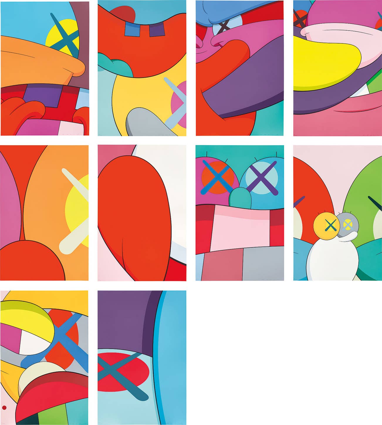 Perhaps he is most known for his larger-than-life fiberglass sculptures that supplant the body of Mickey Mouse onto KAWS' own imagined creatures, often with 'x'-ed out eyes or ultra-animated features. However, KAWS also works frequently in neon and vivid paint, adding animation and depth to contemporary paintings filled with approachable imagination. There is mass appeal to KAWS, who exhibits globally and most frequently in Asia, Europe and the United States.