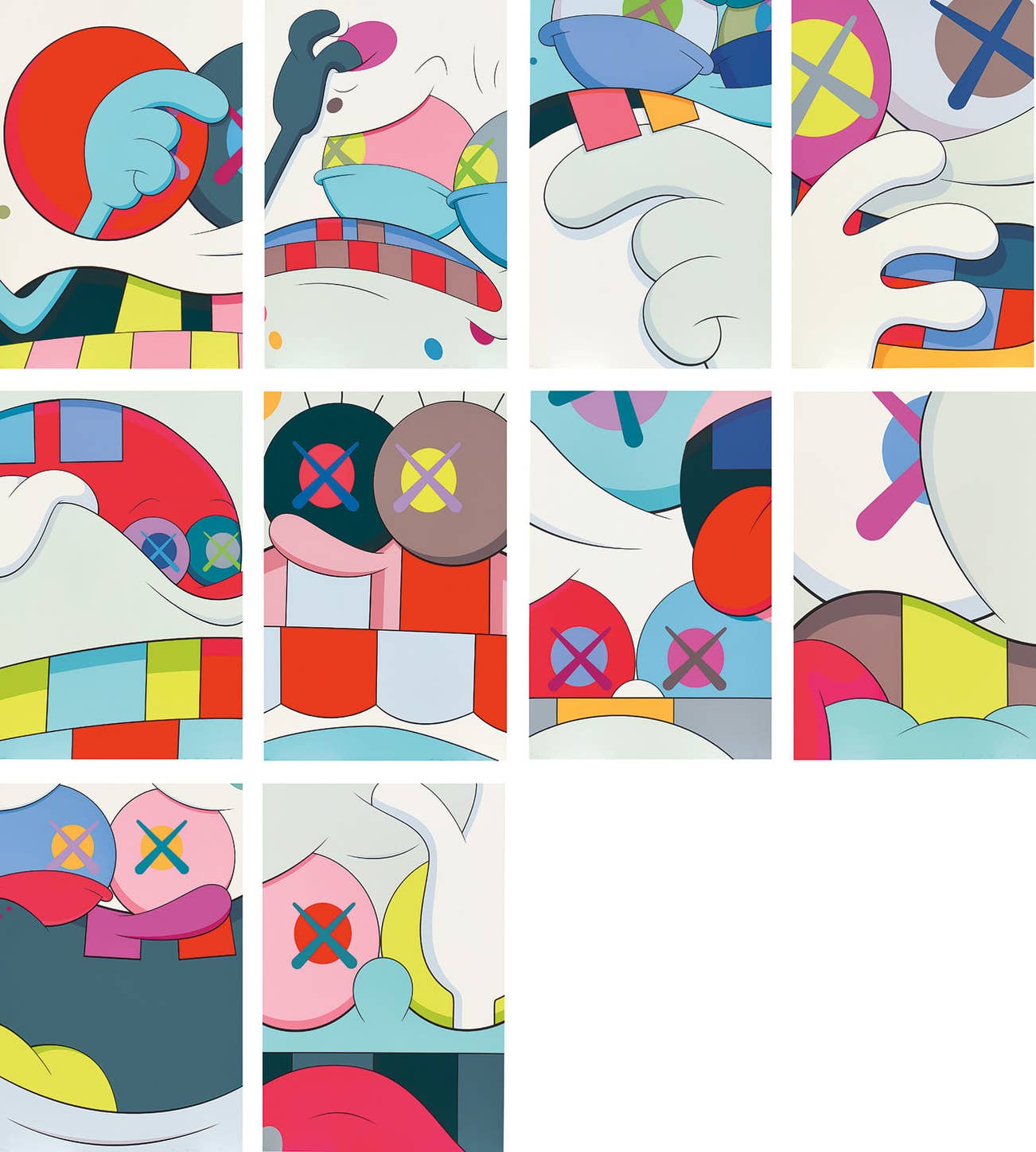 Perhaps he is most known for his larger-than-life fiberglass sculptures that supplant the body of Mickey Mouse onto KAWS' own imagined creatures, often with 'x'-ed out eyes or ultra-animated features. However, KAWS also works frequently in neon and vivid paint, adding animation and depth to contemporary paintings filled with approachable imagination. There is mass appeal to KAWS, who exhibits globally and most frequently in Asia, Europe and the United States.