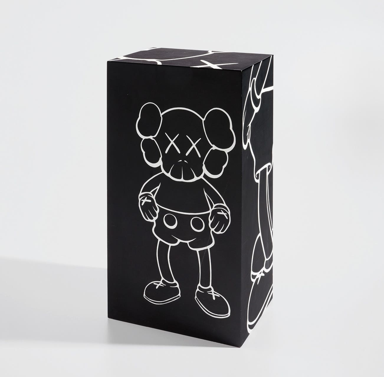 Perhaps he is most known for his larger-than-life fiberglass sculptures that supplant the body of Mickey Mouse onto KAWS' own imagined creatures, often with 'x'-ed out eyes or ultra-animated features. However, KAWS also works frequently in neon and vivid paint, adding animation and depth to contemporary paintings filled with approachable imagination. There is mass appeal to KAWS, who exhibits globally and most frequently in Asia, Europe and the United States.
