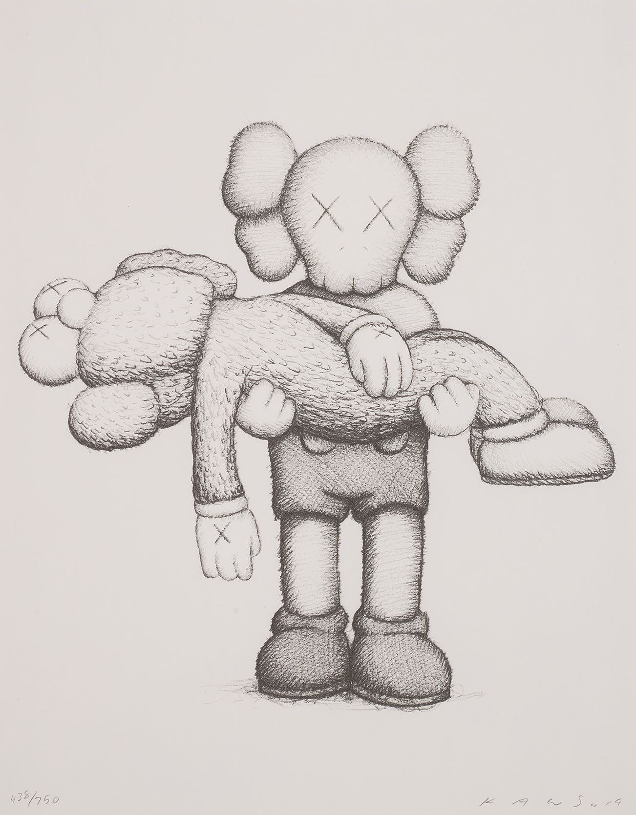 Perhaps he is most known for his larger-than-life fiberglass sculptures that supplant the body of Mickey Mouse onto KAWS' own imagined creatures, often with 'x'-ed out eyes or ultra-animated features. However, KAWS also works frequently in neon and vivid paint, adding animation and depth to contemporary paintings filled with approachable imagination. There is mass appeal to KAWS, who exhibits globally and most frequently in Asia, Europe and the United States.