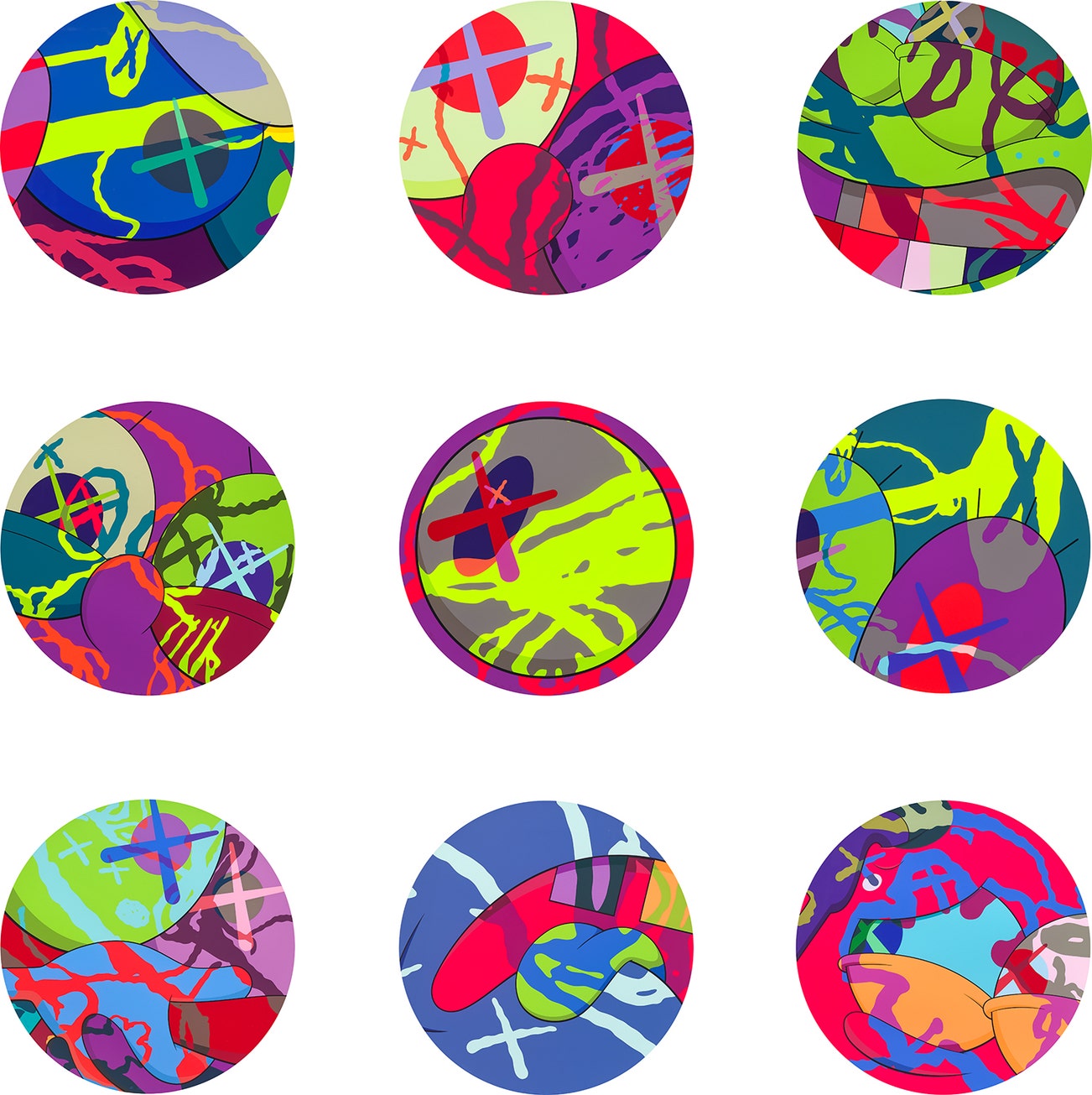 Perhaps he is most known for his larger-than-life fiberglass sculptures that supplant the body of Mickey Mouse onto KAWS' own imagined creatures, often with 'x'-ed out eyes or ultra-animated features. However, KAWS also works frequently in neon and vivid paint, adding animation and depth to contemporary paintings filled with approachable imagination. There is mass appeal to KAWS, who exhibits globally and most frequently in Asia, Europe and the United States.
