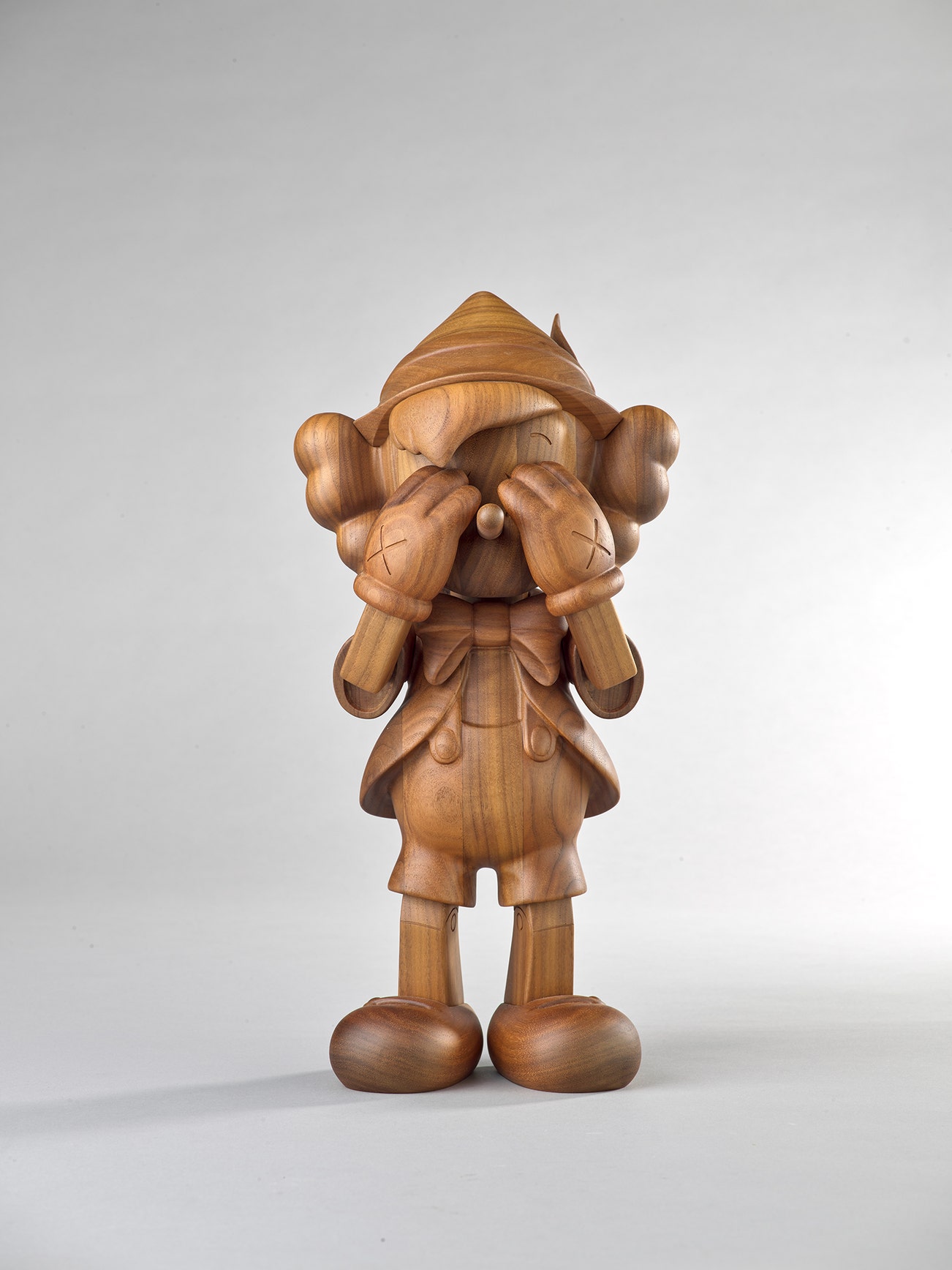 Perhaps he is most known for his larger-than-life fiberglass sculptures that supplant the body of Mickey Mouse onto KAWS' own imagined creatures, often with 'x'-ed out eyes or ultra-animated features. However, KAWS also works frequently in neon and vivid paint, adding animation and depth to contemporary paintings filled with approachable imagination. There is mass appeal to KAWS, who exhibits globally and most frequently in Asia, Europe and the United States.