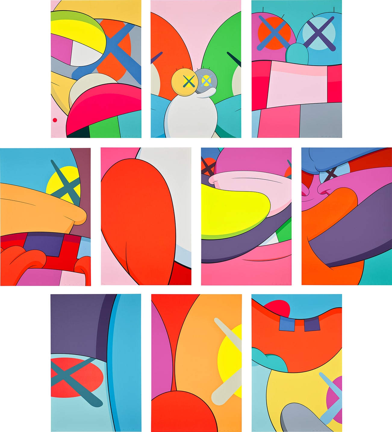 Perhaps he is most known for his larger-than-life fiberglass sculptures that supplant the body of Mickey Mouse onto KAWS' own imagined creatures, often with 'x'-ed out eyes or ultra-animated features. However, KAWS also works frequently in neon and vivid paint, adding animation and depth to contemporary paintings filled with approachable imagination. There is mass appeal to KAWS, who exhibits globally and most frequently in Asia, Europe and the United States.