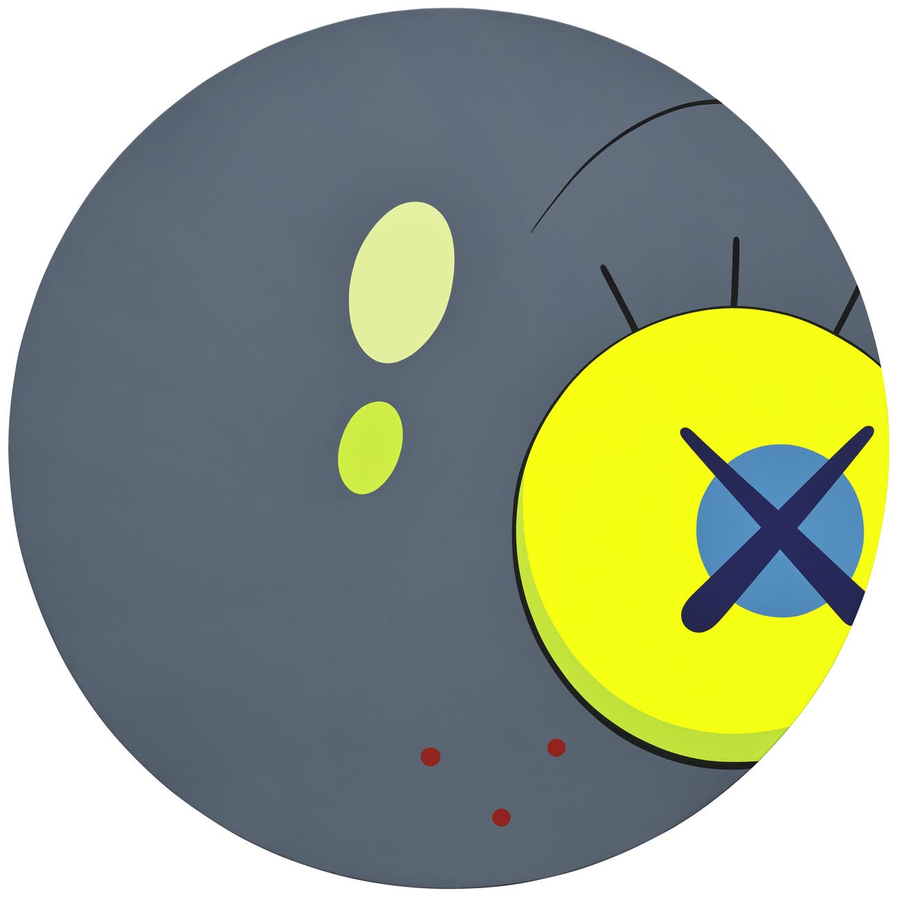 Perhaps he is most known for his larger-than-life fiberglass sculptures that supplant the body of Mickey Mouse onto KAWS' own imagined creatures, often with 'x'-ed out eyes or ultra-animated features. However, KAWS also works frequently in neon and vivid paint, adding animation and depth to contemporary paintings filled with approachable imagination. There is mass appeal to KAWS, who exhibits globally and most frequently in Asia, Europe and the United States.