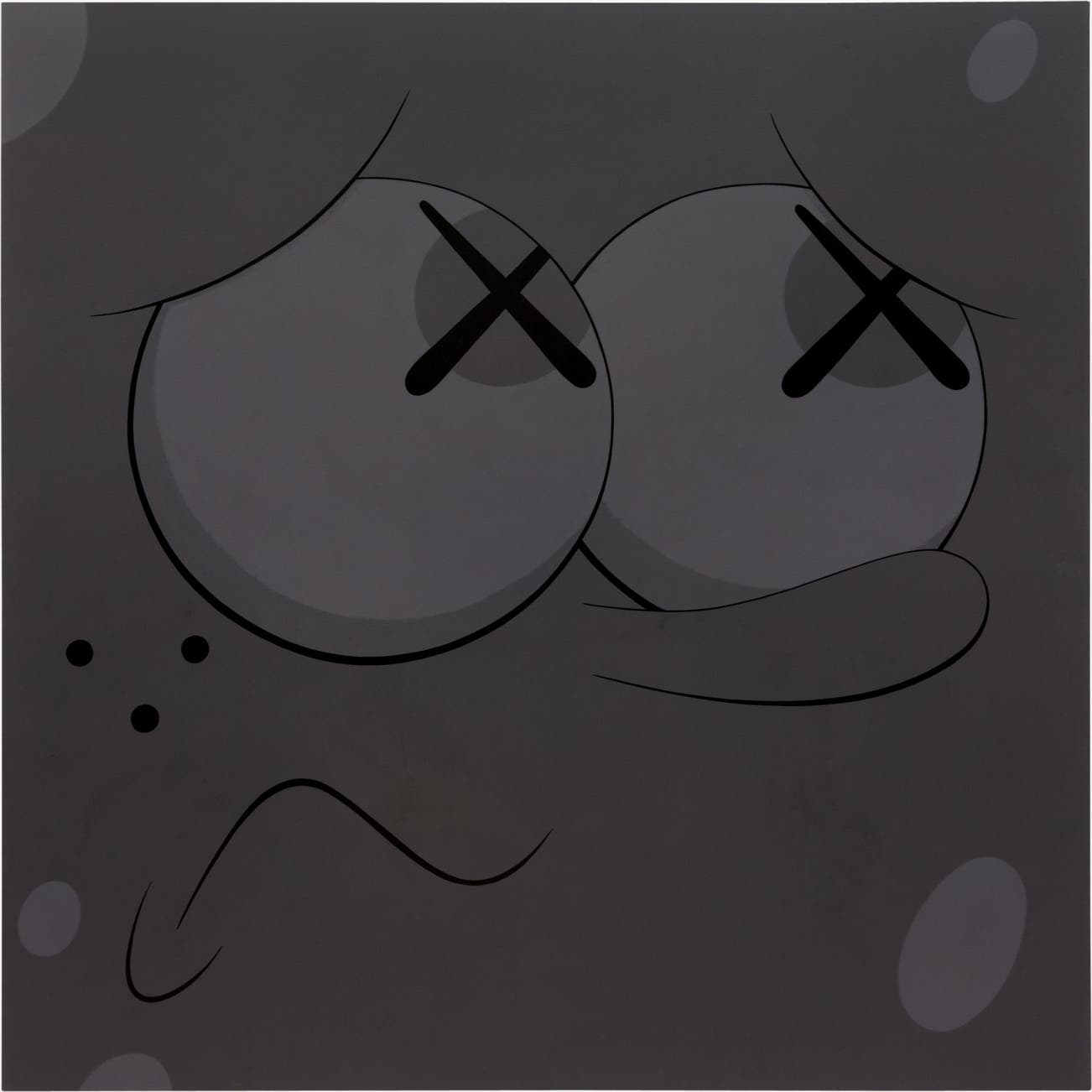 Perhaps he is most known for his larger-than-life fiberglass sculptures that supplant the body of Mickey Mouse onto KAWS' own imagined creatures, often with 'x'-ed out eyes or ultra-animated features. However, KAWS also works frequently in neon and vivid paint, adding animation and depth to contemporary paintings filled with approachable imagination. There is mass appeal to KAWS, who exhibits globally and most frequently in Asia, Europe and the United States.