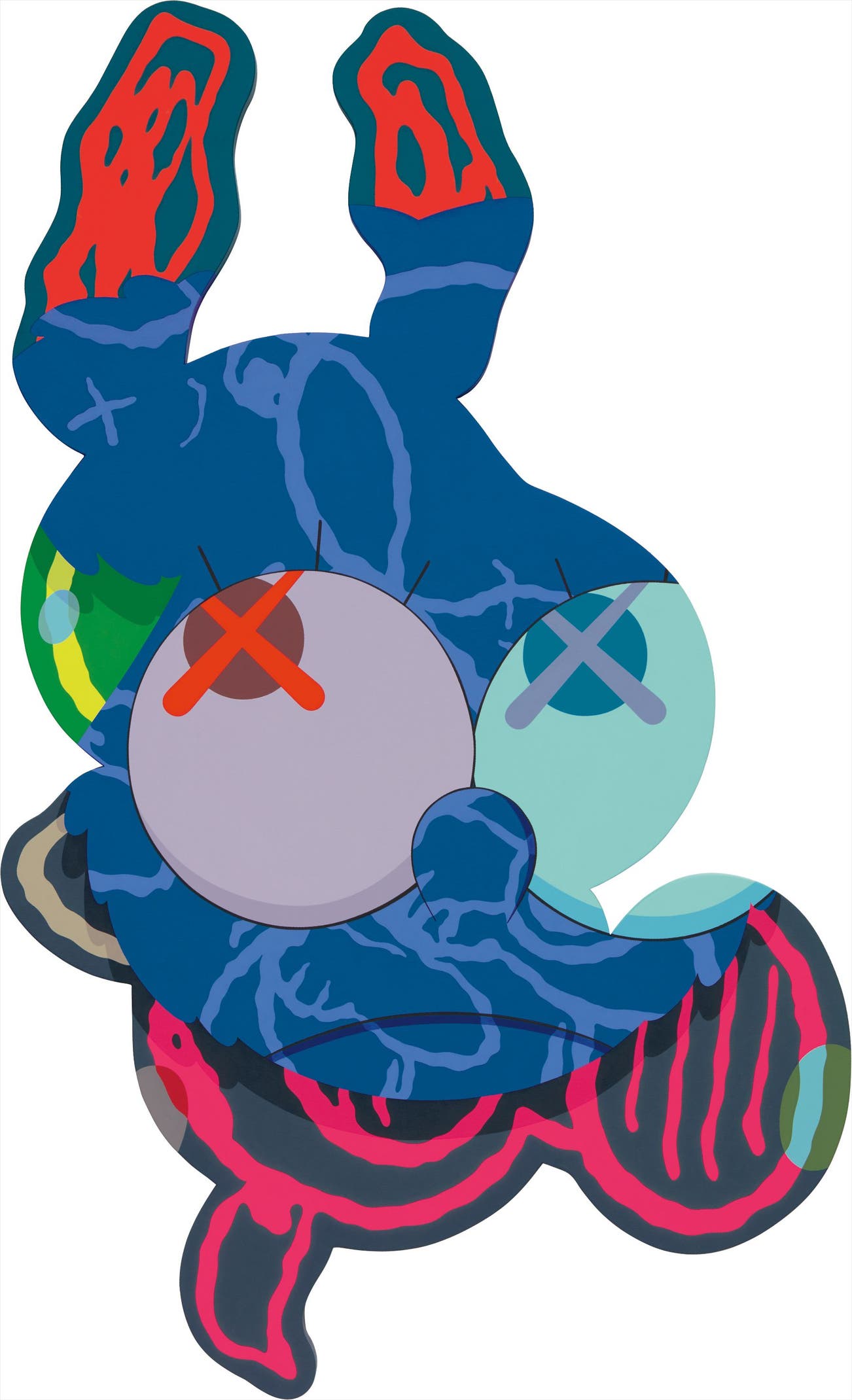 Untitled (Color), conveys KAWS's skill to turn childhood icons into unique creations. His practice blends fine contemporary art with consumer culture and collaborations with global brands. KAWS has worked together with fashion houses and created an album cover for Kanye West. This entrepreneurial aspect has allowed the artist to trespass the sphere of the art market and step into a more global and dynamic marketplace.