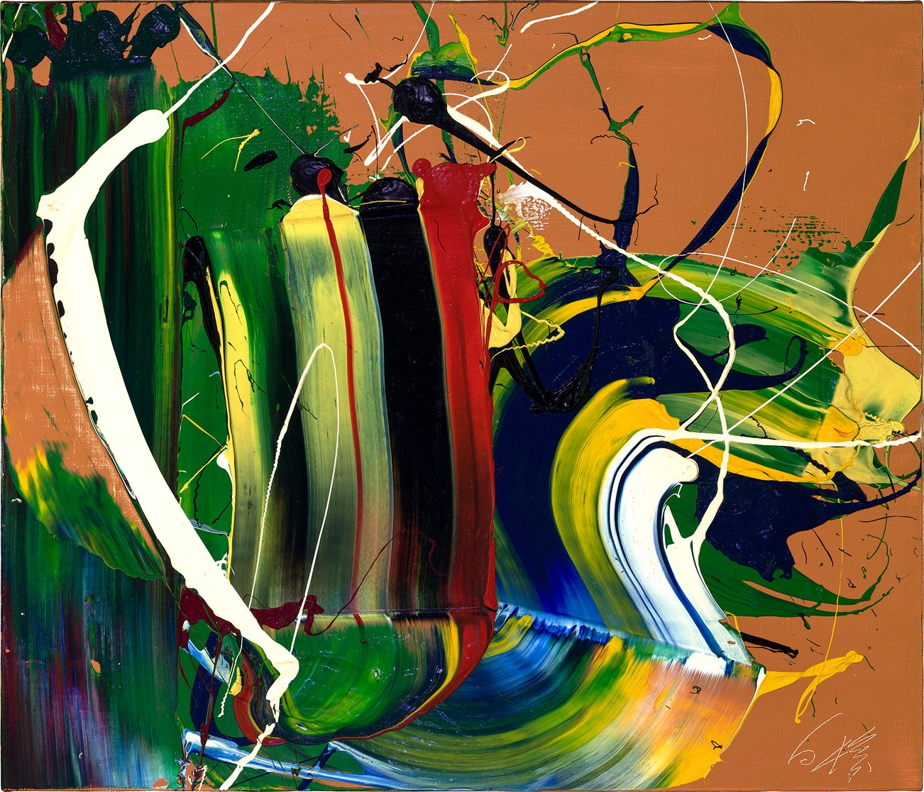 signed 'Shiraga' lower right; further signed and titled '"Ritsu" Kazuo Shiraga [in Japanese]' on the reverse