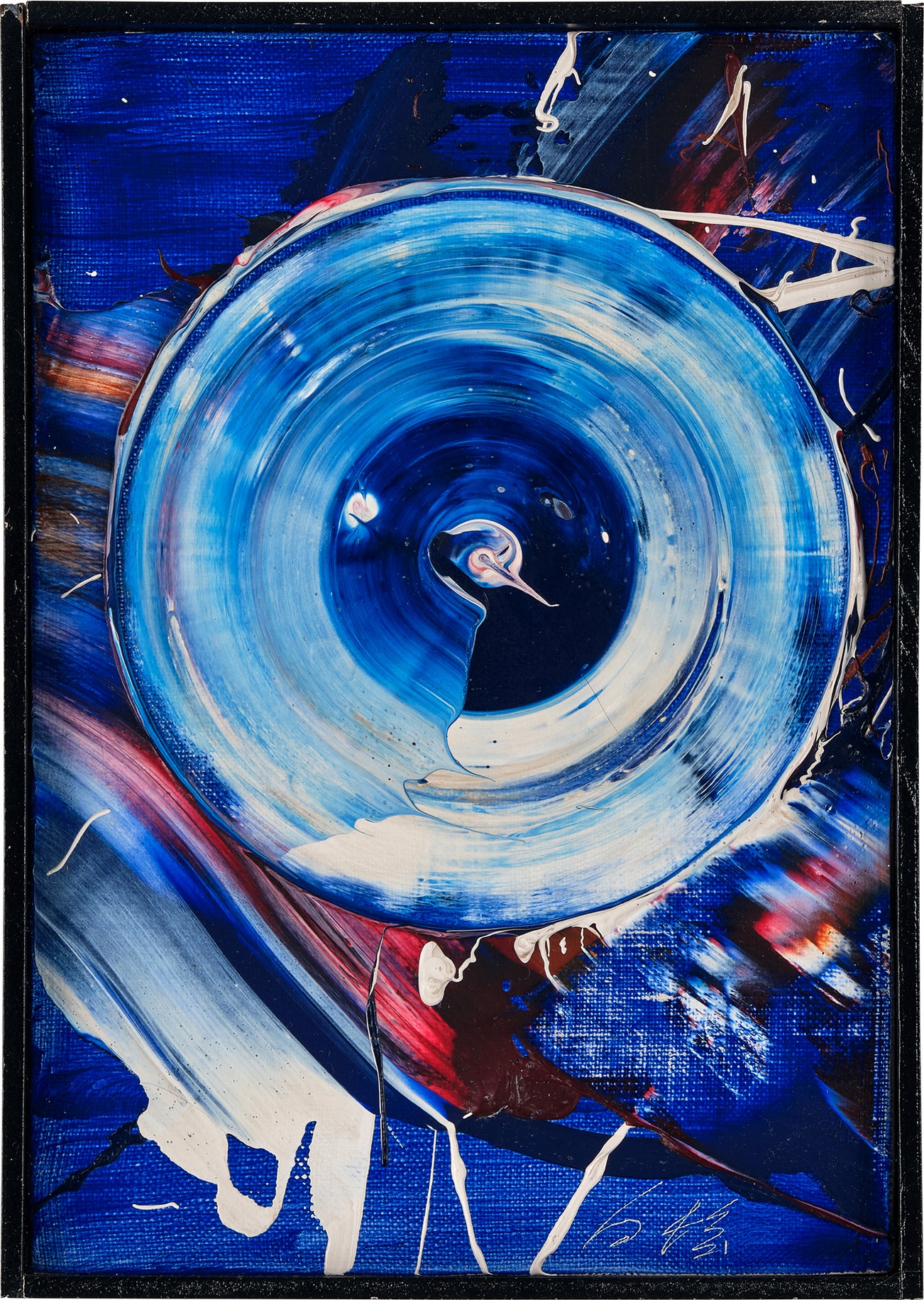 signed 'Shiraga [in Japanese]' lower right; further signed 'Kazuo Shiraga [in Japanese]' on the reverse